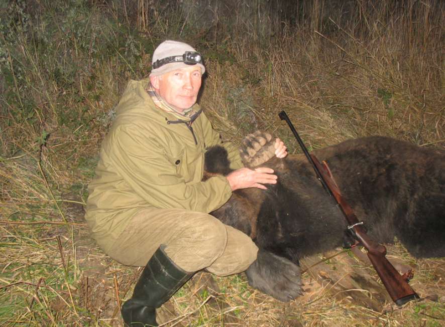 Результат оказался очень даже удовлетворительным, разбит плече-лопаточный сустав, левая передняя лапа болтается, вдребезги разнесено сердце и печень. Даже что-то не припомню такого сильного поражения сердца. Зверь переместился от места попадания в него пули метров 7-8, полностью угас не более чем за минуту. Калибр 9,3х62, пуля Эволюция 18,8 гр. Зверь - самец, лапка и шкура соответсвенно 15 и 210 см, вес ориентировочно 2 центнера, возраст 7-8 лет. Вот такое начало сезона.