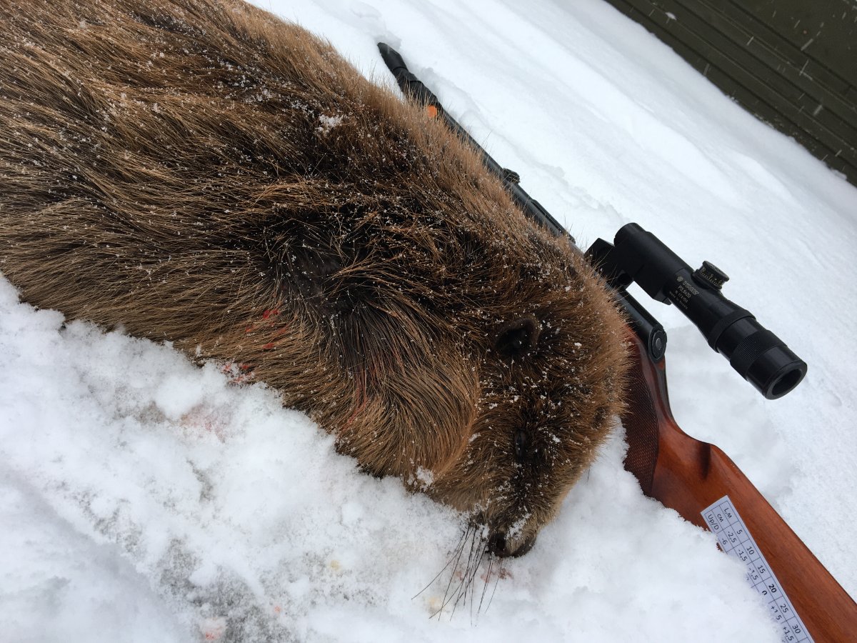 Опубликую еще одну фотографию с пояснениями: Четыре года назад, в темную октябрьскую ночь, когда снега еще нет, а вода чернее ночи, подо мной на выходе из хаты всплыл бобрик, в свете фонаря не было понятно где у него перед, а где зад, медлить было нельзя и я стрельнул наугад, предположительно в голову, прошлой осенью он попался в капкан, с вот такой клешней.(Стрелял 223 рем, 3,6 гр, "шило", дистанция 2 м.)