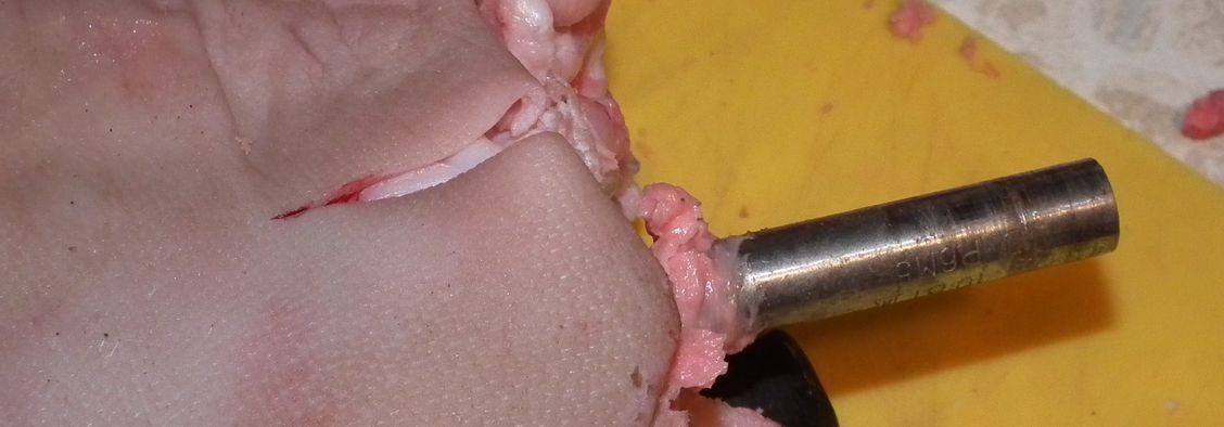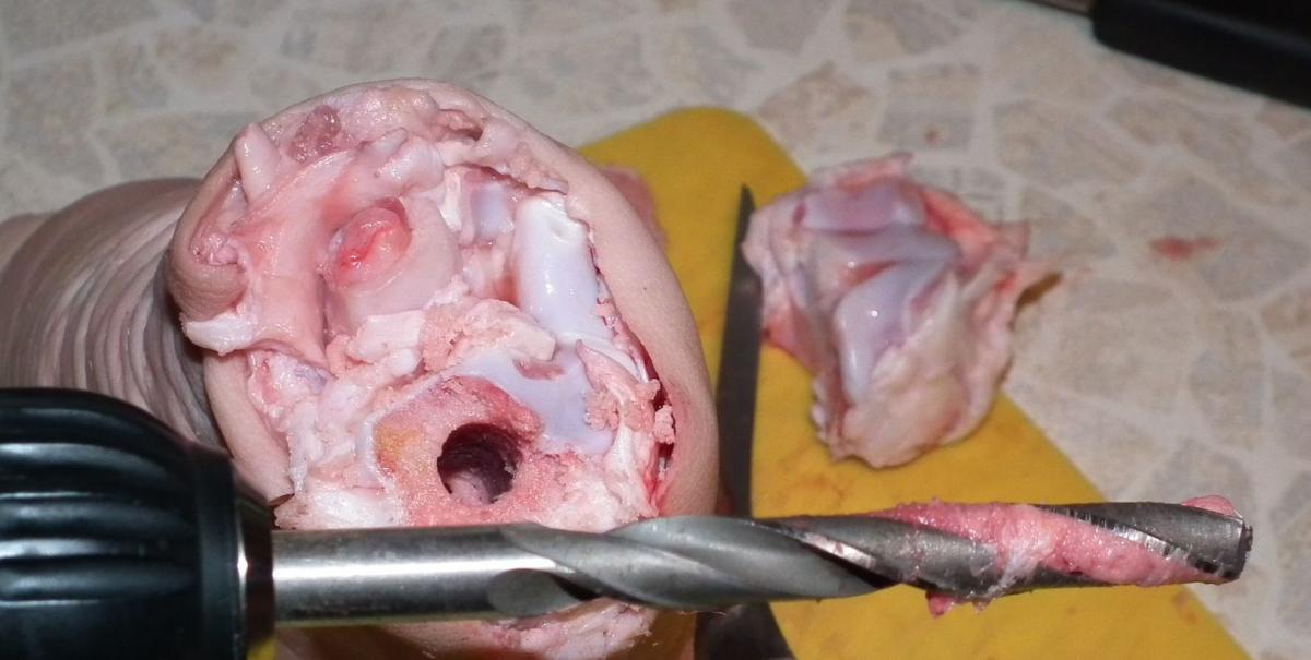 Сначала маленьким сверлом, чтобы направление выбрать, потом толстым. Ну, и внутри пошерудить по кругу, чтобы полость побольше была.