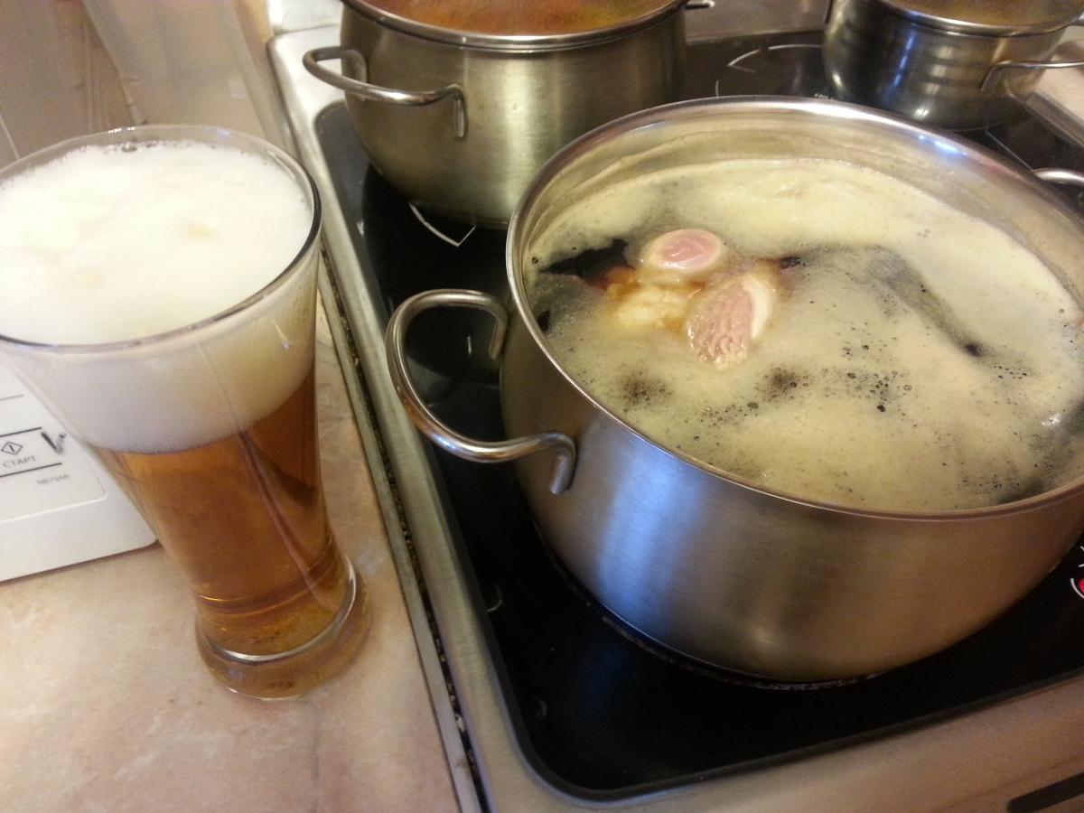 В домашних условиях делал в русской печке и духовке печной. На охоте, у нас около землянки, старая прогоревшая буржуйка. Вот ее ставил в костер «на попа», нагревал и в топливную дыру подвешивал внутрь рульки. Дырку от трубы заделывал консервной банкой, чтоб пламя внутрь не попадало.