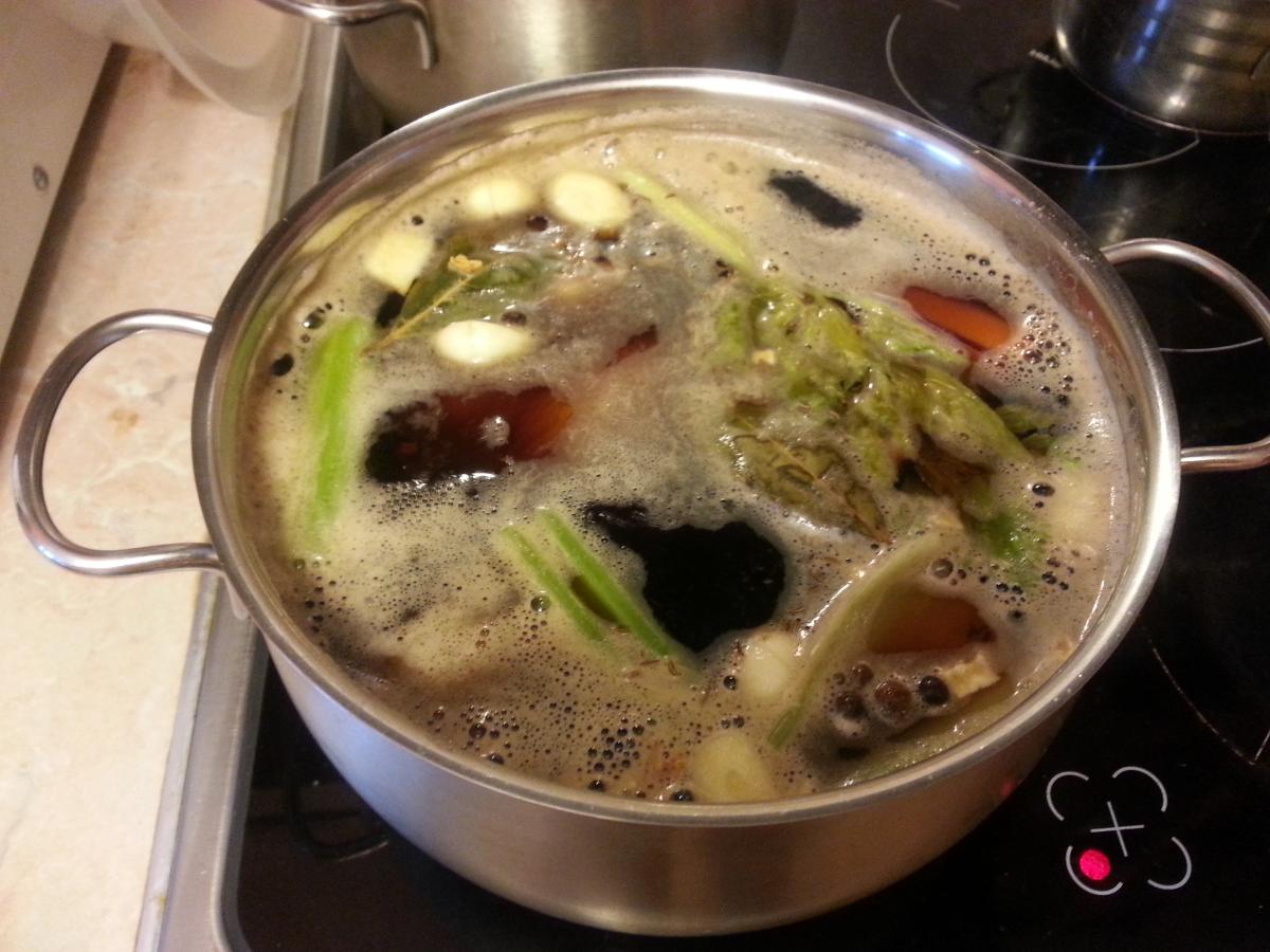 Еще раз предупреждаю, следить, чтобы масло не попало в трубочку, а то закроет поры в косточке и будет уже не тот цимус. Я один раз так прокололся. И еще, когда рульку опускаешь в масло, оно брызгает и загорается, осторожно!