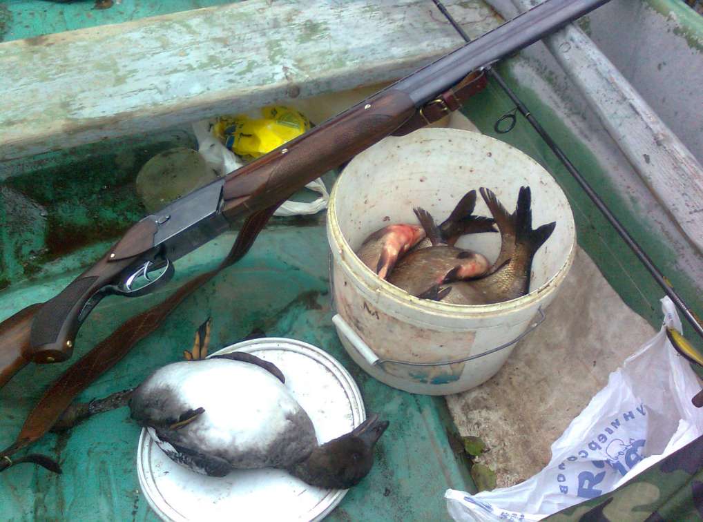 И года еще не прошло как я открылся на открытии охоты не был, потому как был за границей в отпуске ,выбрался первый раз в прошедшие выходные, честно от дежурил два вечера и две зорьки ,утка вся собственно не то распугана или вся на чистой воде ,в камыше практически нет ,сидел со своими болвашками в засаде, если и виделась на горизонте утка ,то уже похоже стрелянная ,летает кругами над чучелами на выстрел не опускается, хоть об крякайся и такой дичи там много на смотрелся но в воскресенье утром все таки добил одного водотонущего ,с чем себя и поздравил ,днем не плохо удалось половить подлещика, видел гусей штуки четыре и не большие стайки утки высоко в небе ,вообщем то перелет тоже пока не очень ,в свободное от всего этого дела откармивал местного кота рыбой ,что ему аж по плохо стало, а он все жрет и жрет ,собака,фотки не очень ,сделанно мобильником.