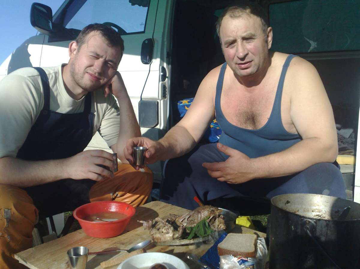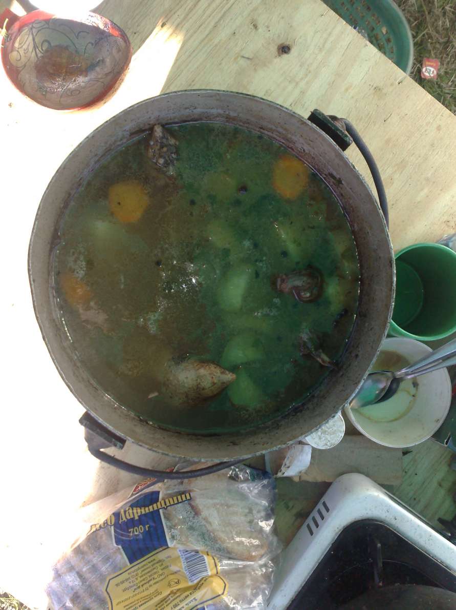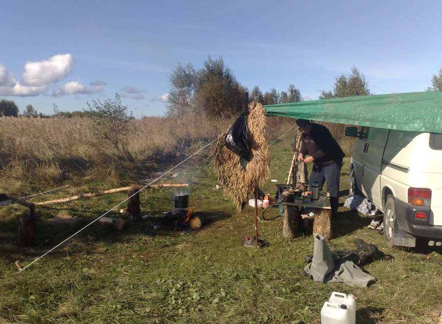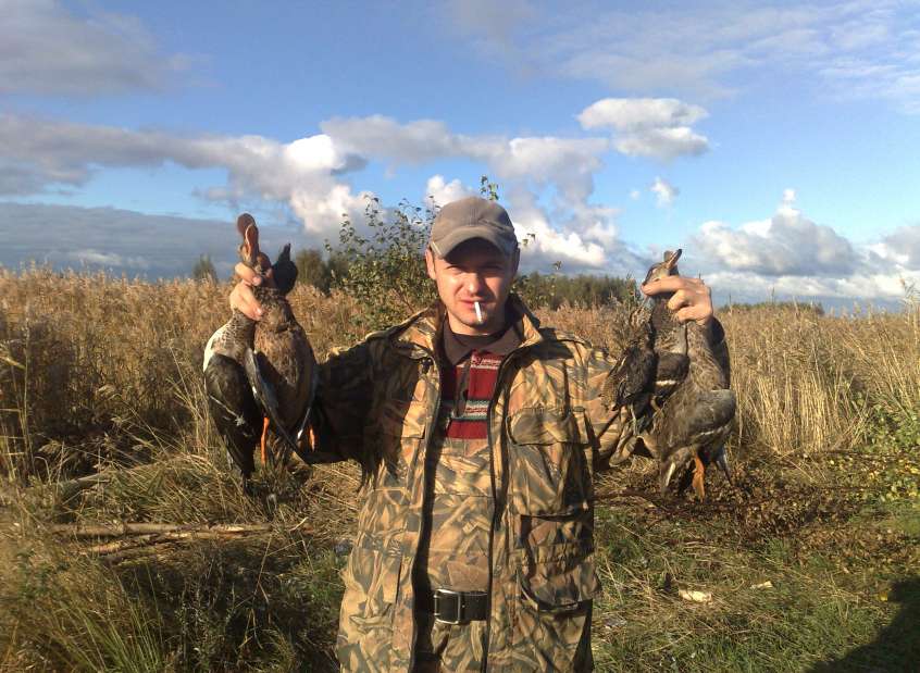 Утро. Выходим на позиции в сумерках, начинается лет. Судя по выстрелам охотников было мало. Лет был на троечку по сравнению с прошлыми годами, т.к. раньше за зорьку растреливолся патронташ примерно и эмоций вагон, но тем не менее было добыто 4 утки и один кулик, значит шулюм на обед уже есть. В обед, как положено, был сварен отличный шулюм и была пожарена рыба и все это под экологический чистый продукт домашнего производства (сем), короче все удалось. Дело к вечерки. Вечерний лет оправдал все ожидания, он был хорош, утка заходила на чучела, хорошо реагировала на манок, в общем все было хорошо. В лагерь все вернулись довольные, и на впечатлениях вечер у костра добавил эмоций, и на этой волне все улеглись спасть, примерно к полуночи, т.к. с утра на позиции.