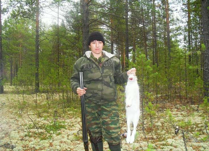 Всем привет после выходных! Ну вот! Радости не передать! А радуюсь за свою собаку - "Пуля" её звать. Поехала в субботу по лесу побродить, рябчиков посвистеть, а если счастье стрельнет, то глухаря увидеть! Это моя мечта - глухаря взять. Прошли с братом около 3км, но ни одной живой души, кроме дятлов и сорок((( Решили вернуться к костру - чаю попить, а потом в другую сторону сходить. Брат занялся приготовлением чая, а я решила вокруг походить. Пошла, а Пуля где-то сзади меня потерялась. Через пару минут слышу короткий лай и сзади справа метрах в 40-50-ти заяц. Резко в мозгу вспоминаю как один дед на хуторе учил. Свистнула - заяц сел. БЛИН!!! впереди частый мелкий сосняк, ползу на корточках, чтобы выбрать чистое место для выстрела... вот вижу косого четко и всего! Выстрел и зайка кувыркнулся, бегу к нему, думаю может надо добивать. Но не пришлось, пока до него дошла, он уже был готов! Пуля с таким выражением своей собачьей мордочки подбежала, что у меня аж слезы на глаза от радости навернулись. Обнюхала место где заяц упал и куда-то стрелой помчалась! Ну а я с гордостью возвращаюсь к костру с добычей и принимаю поздравления от брата и друзей, которые с нами поехали в лесу у костра посидеть! Вот такие выходные. Охота эконом-класса - один патрон, один заяц! А собаку еще 40 минут ждали, когда вернется!