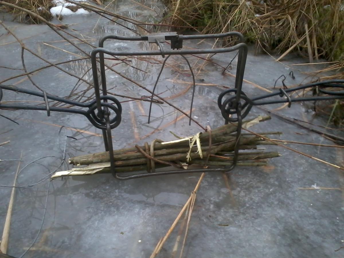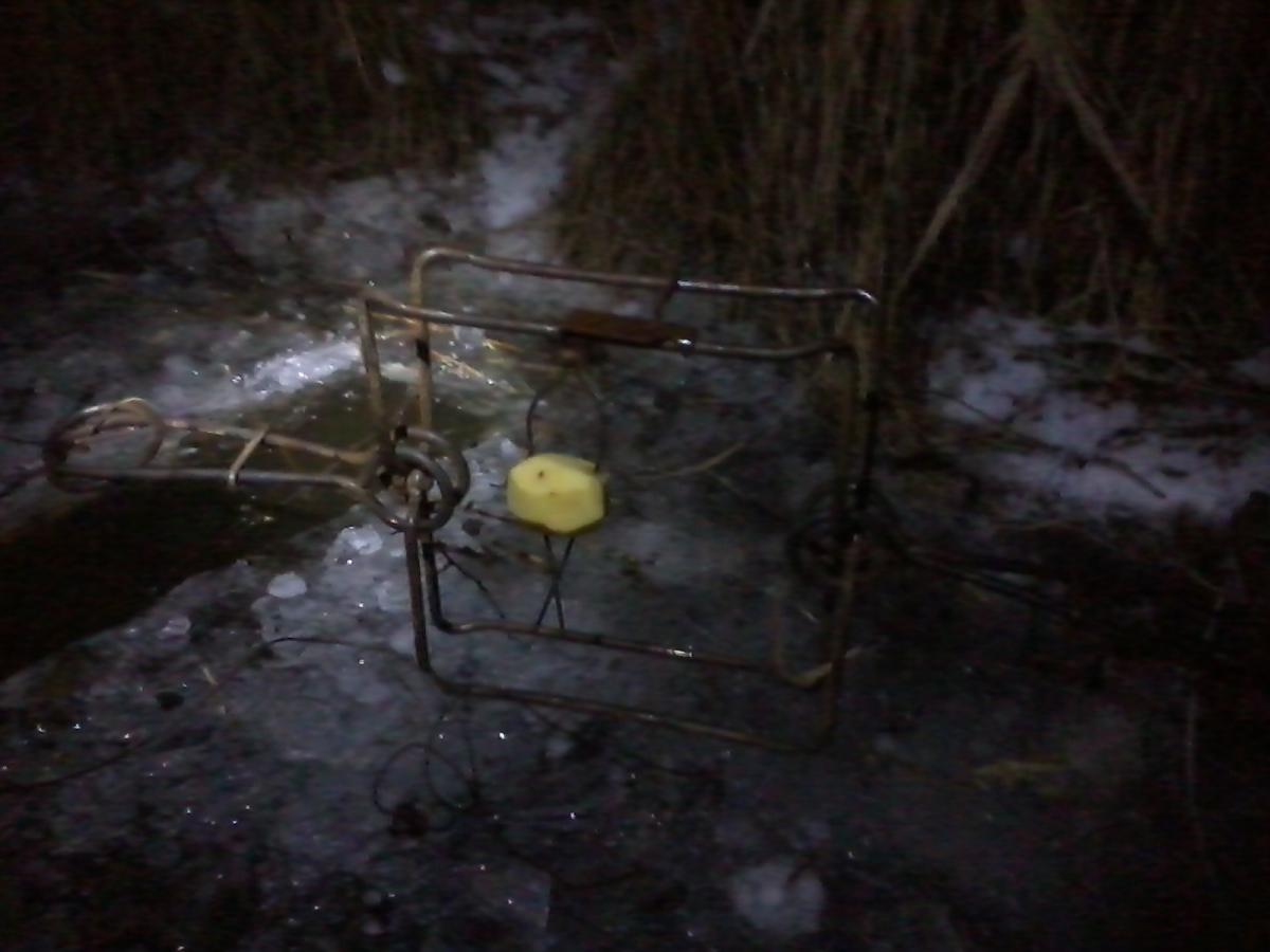 Дима там все просто, можно капкан на колу поставить, а можно и подвесить. Вот смотри фото с приманками сам лично ставил работает только вариант с палочкой как в конибере. Остальное танцы с бубном.С пузырями всё понятно! Я думаю как ставить возле заготовленного корма? Там он двигается хаотично и на разной глубине, ведь ветки тоже лежат беспорядочно! И если его не заманивать в рамку, то получается, что он туда попадает чисто случайно? И чем больше натыкаешь капканов, тем выше вероятность его поймать?