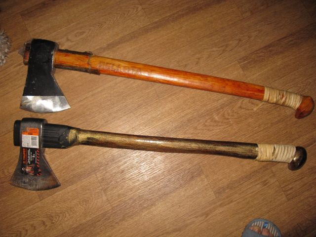 А это не переделка? А как же баланс топора? Тоже выдумка дремучих старцев?Хоть один топор будет у человека,его переделывать не нужно,ручку обрезал и в лес