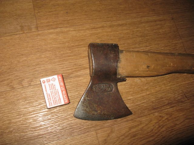 2-й лёгкий походный, клеймо КАМА г.Молотов год не указан, топорище дуб 67см. всад прямой, вес 700гр.