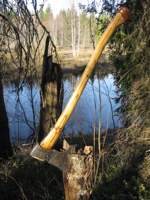 Горбатая хусварна.Как насаэен топор,чем пропитан,из чего ручка,сколько клиньев,мешает бобышка и железки нет смысла обсуждать-рулит другое в топоре.Ну например-на вскидку-не марка стали,у угол перехода от лезвия к проушине-его кривая.Не материал ручки,а ее длинна,вес-толщина.И крестьянство-топорище дубовое,не знающее что такое шкурка-дальше можете не говорить,что у вас за топор-имхо очень личное.На снимках ВАча и Хусварна,но ручки-то подобные.
