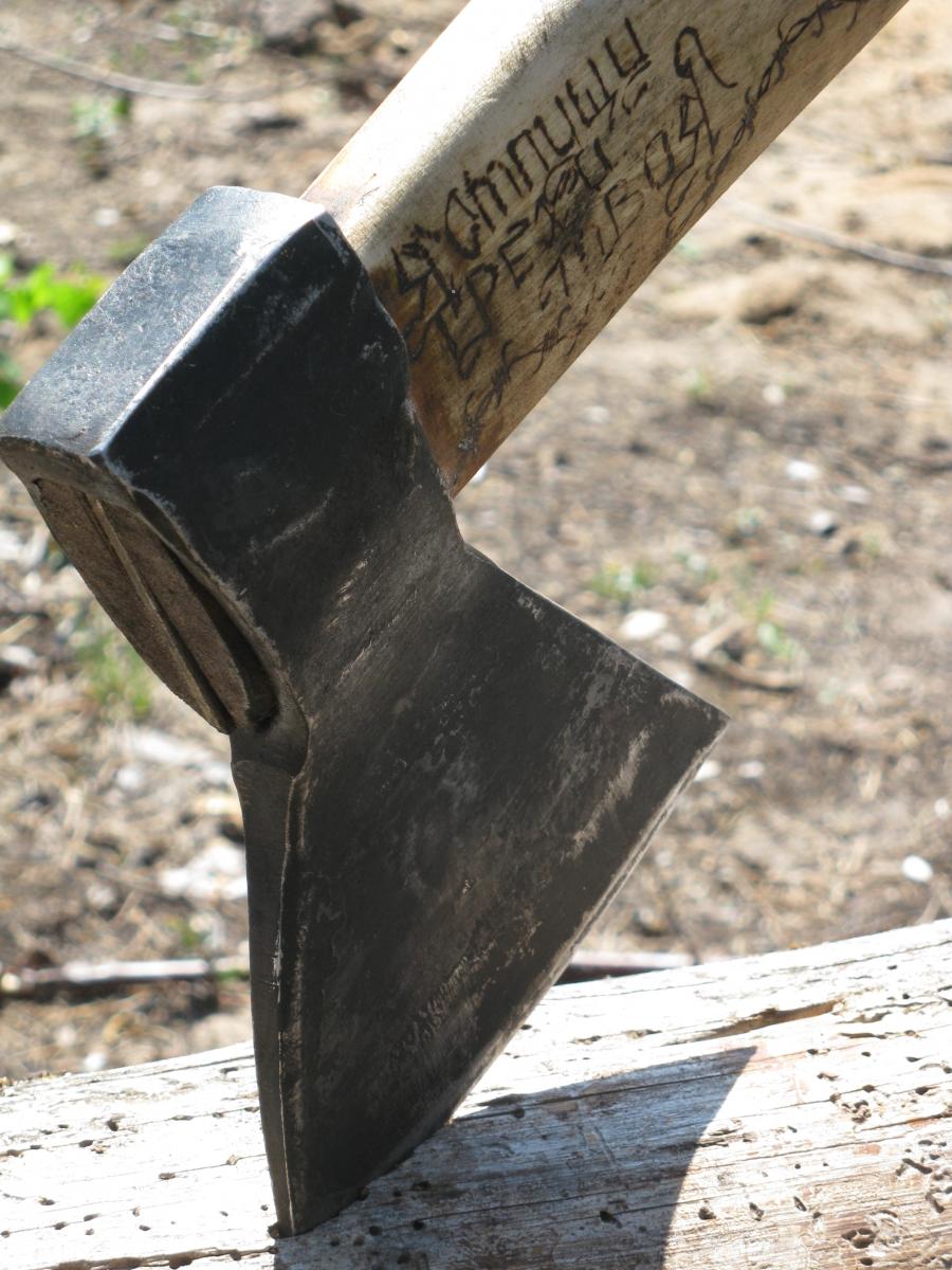 Балаганное житье-тема.Для чего.Топор важнейшая часть снаряги,сломается не умру точно.Но не сломается.Современный охотник-что за зверь-Биннелли,база-биллиард?Три больших буквы Б уБивающие охоту,зачем топор-хороший вопрос.....IMG_4272.jpgIMG_4276.jpgIMG_4278.jpgТопор УЦМ-крайняя(800 гр) переделка,не плохой топор, в килограммовом исполнении-классический вес охотничьего валочника-два фунта.Имхо-вес позволяющий сделать легкий топор,вокруг которого можно переночевать в лесу.В любое время года.В 800 гр исполнении-легкий ходовой топор.с пружинистой рукояткой,позволяющий рубить расслабленной рукой.Охотничий топор-маленький валочник,спутник в путешествиях,где хозяйственных нужд-костер.Пила топор не отменяет.Имхо-в списке личного,носимого всегда оборудования,в отличии от пилы.45 сталь,15 лет гарантии-тест топора.....Топоров для переделки много,надо только посмотреть внимательно.Вокруг.Может он у вас в сарае живет.Не залипайте на ролики,где по старинным русским рецептам куют топор из современного круга стали,марку которого в 1980 году придумали.Можно вообще без топора остаться,с таким подходом....зачем топор современному охотнику....шведам вопрос задайте.У них есть,а нас все в хозяйство тянет,чтоб из него еще кашу сварить.Хозяйственным нуждам-хозяйственный топор,валить все в одну кучу-получите топор с пожарного щита,на охоте.