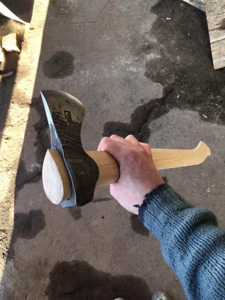 Уменьшение массы,при короткой ручке и привело к этому,с геометрией все нормально.Ручку удлинить,сделать тоньше.Но вы пишите про габариты.Не любимая мной тема-чтоб в рюкзак влезал?На производительность влияет длинна ручки-второй закон Ньютона.Короткая ручка-большой вес головы,или длинная ручка и голова полегче-вокруг этого и играешь.IMG_4265.jpg Валочники.В середине-топор УЦМ,слева-Хусварна,справа Беллота.Ручки под 70 см.Вес ручки менее 200 гр.Топор заиграет,если ручка уйдет за 60 см.Имхо.Удачи.Вы на правильном пути,и вес ручки уменьшать,безжалостно.Если чего мы и нашли в поисках русского топора,так это чудовищную дубовость рукоятки,или вычурность Ворсмы,один плюс-ценник у них падает.....IMG_4264.jpgТопор с короткой ручкой и длинной-два разных топора.