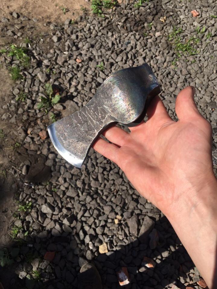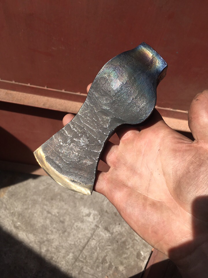 Вот,приобрёл я в кузнице Оукъ себе голову топора на 800гр.Сталь у 8а,линзовидная заточка.Проушина трапециевидная под обратный всад,довольно большая.0_h9u9G0I6U.jpgPXJOI-e94k0.jpg1WMjtPAEpps.jpgCQ18oWuTO2I.jpgp-G5FFza_-0.jpgiEziGNgEUXY.jpgНа мой вопрос,по поводу бородки ответили,что она не нужна.Топорище держится как влитое.Топор в пути,едет почтой России.Придёт посылка,буду смотреть,как его обдеревяшить топорищем.