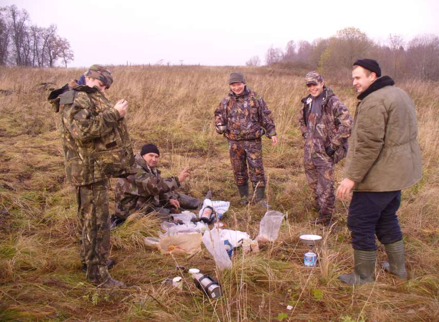 Приехали... обсудили место охоты... дождик идет... поехали в лес...верней туда, куда нас отправил Егерь... немного поплутали с правыми и левыми поворотами... вроде приехали... 30-ти секундный передых сбор и... кааак ломонемся... сил-то у всех полно... не то что на обратном пути :) ... напролом через лес в долгожданные поля... сказать что зайся не было... промолчим... какашки видели :) по остальному - глухо - ни ушей ни хвостов... крепко сидит... но есть пункт ЦВА, т. е. рябчик... ох и вкусный... килограм вроде 800 рублёв... прям как мраморное мясо племенного рогатого скота (маааленькое лирическое отступление). Ну походили побродили взяли двух... мало... но все же...
