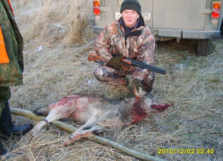Юрий, видели двух волков. Этого взяли во втором загоне, вышел на моего товарища рысцой следом( минут через 5 )за косулей. Бил он его картечью Феттер 8,5мм. метров с 25-30. Сначала выстрелил и взял, а затем с его слов испугался. Есть серая лайка, боялся, что её завалил- обошлось.:ag: В третьем загоне на краю леса собакены обнаружили стадо больших кабанов шук 15, но те ушли не на стрелков, а в густую высокую траву на поле.( снега то пока нет) Народ пытался окружить их и со стороны поля. Один стоял на тракторной колее, видел что трава колышится, думал кабан, а перепрыгнул второй волк. Тот малость опешил, выстрелить не успел, боялся с собакеным перепутать. Нашли ли собак пока не знаю, но в третьем загоне один слышал когда собачки гоняли кабанов, как одна взвизгнула. Он ещё сказал не кабан ли её подрезал. А теперь думаем не волк ли?