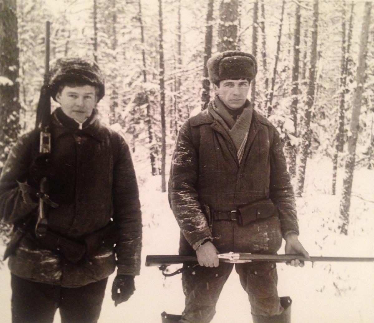 Нашел фото первого выезда с первым своим ружьем больше 30 лет назад (Зима 86 г) с нашим председателем коллектива.
