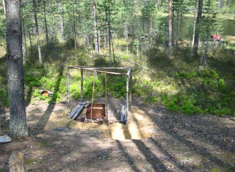 Снаружи на костре нагреваются булыжники. Потом камни заносятся внутрь и складываются по центру. Подливать по желанию. Говорят очень жарко. Тот кто напарился может помочь в ротации камней.