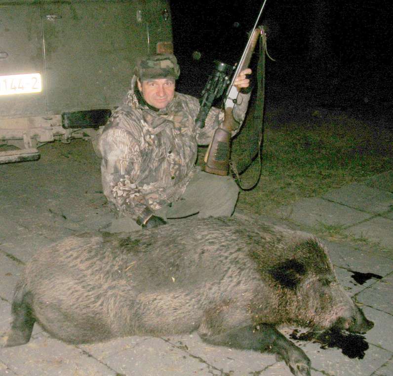 Удовольствие ниже среднего добирать и вытаскивать из крепей. Попадание в район глаза-уха (или за голову, в шейные позвонки, но это портит часть хорошего мяса) гарантированно оставляет кабана на месте.
