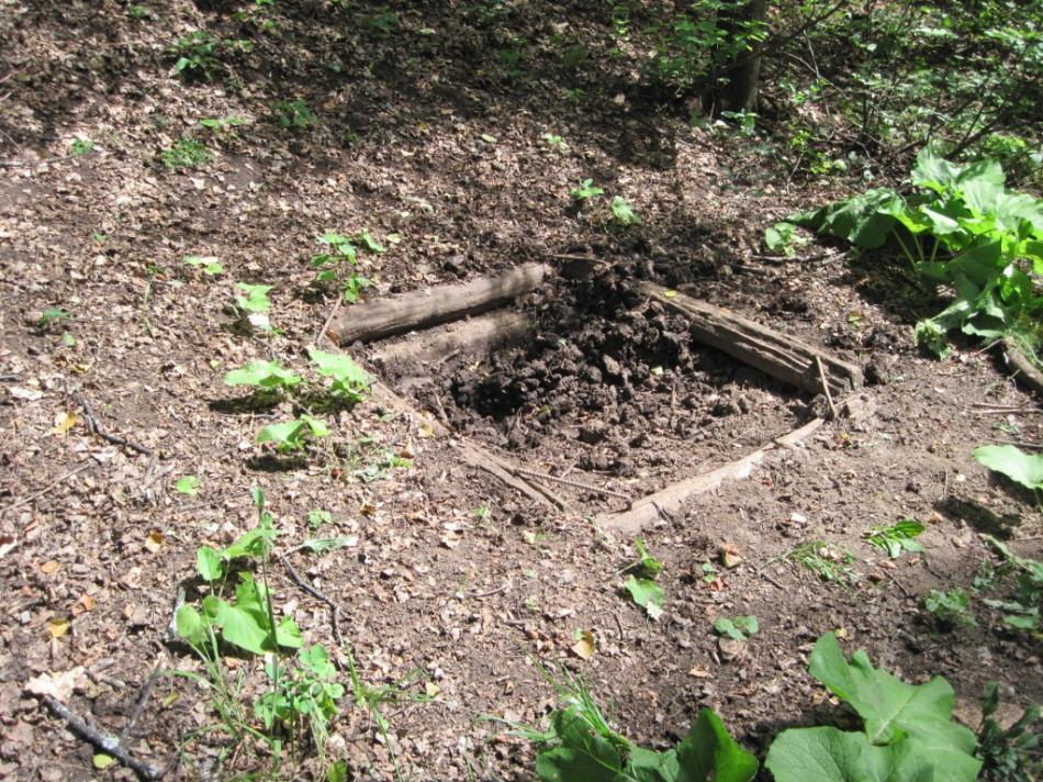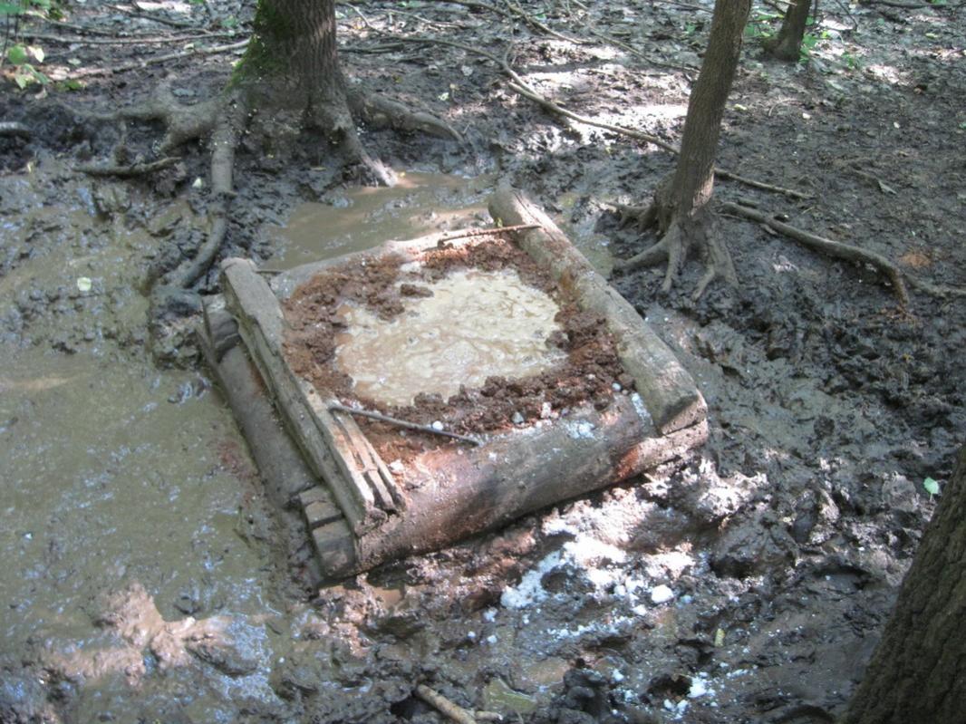 добрались до одного из самых первых солонцов, сделанных почти классическим способом в срубе в 1998 году (с этого года начали делать солонцы в срубах смешивая глину с солью)