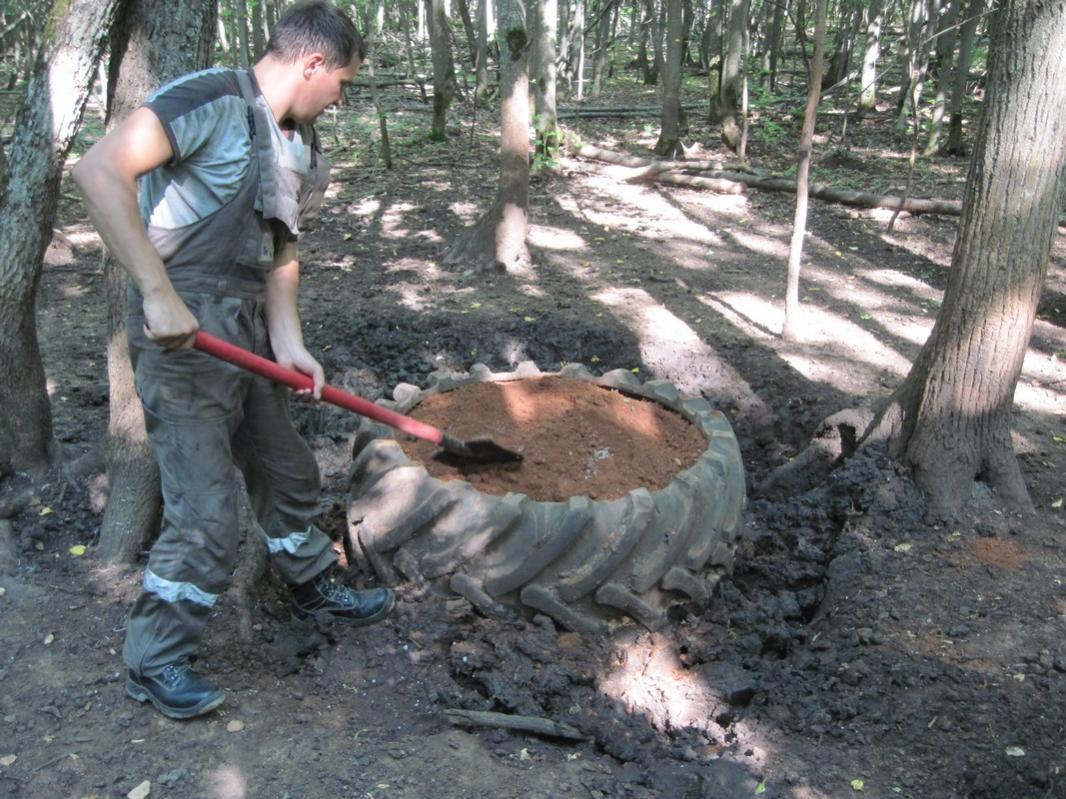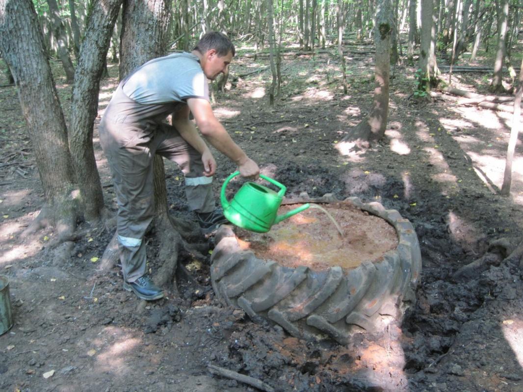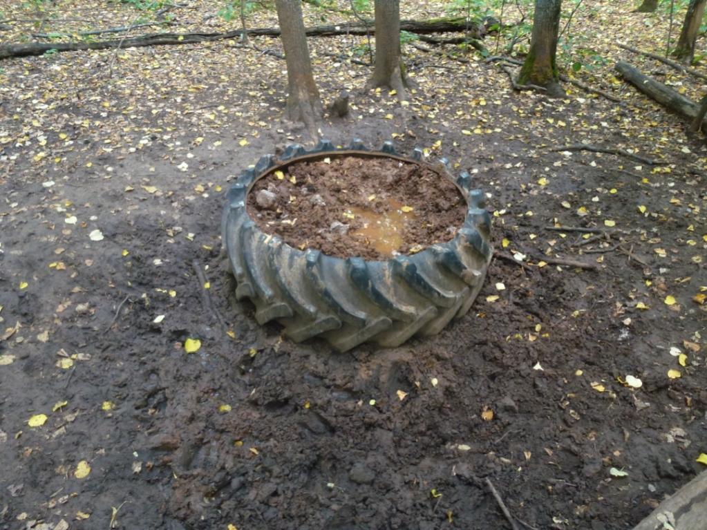 очередной солонец из сруба и тракторной покрышки (раздолбайства и пох....изма егеря пока никто не отменял)