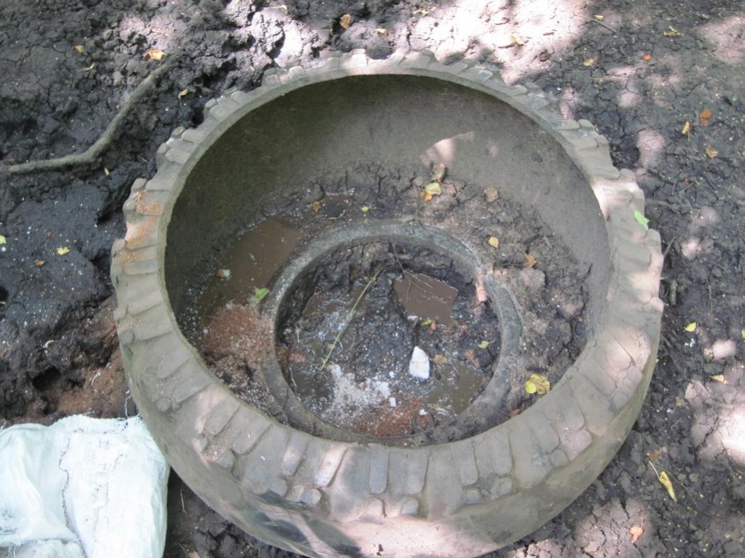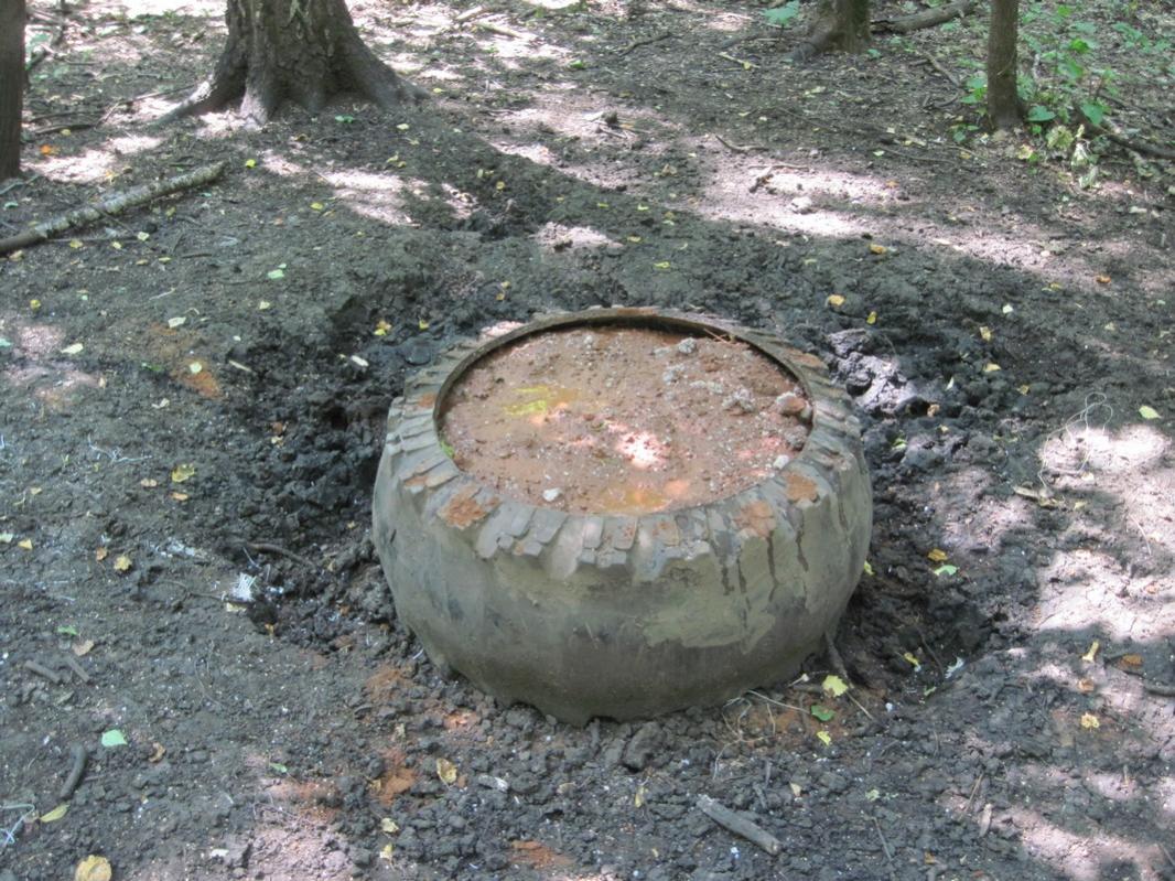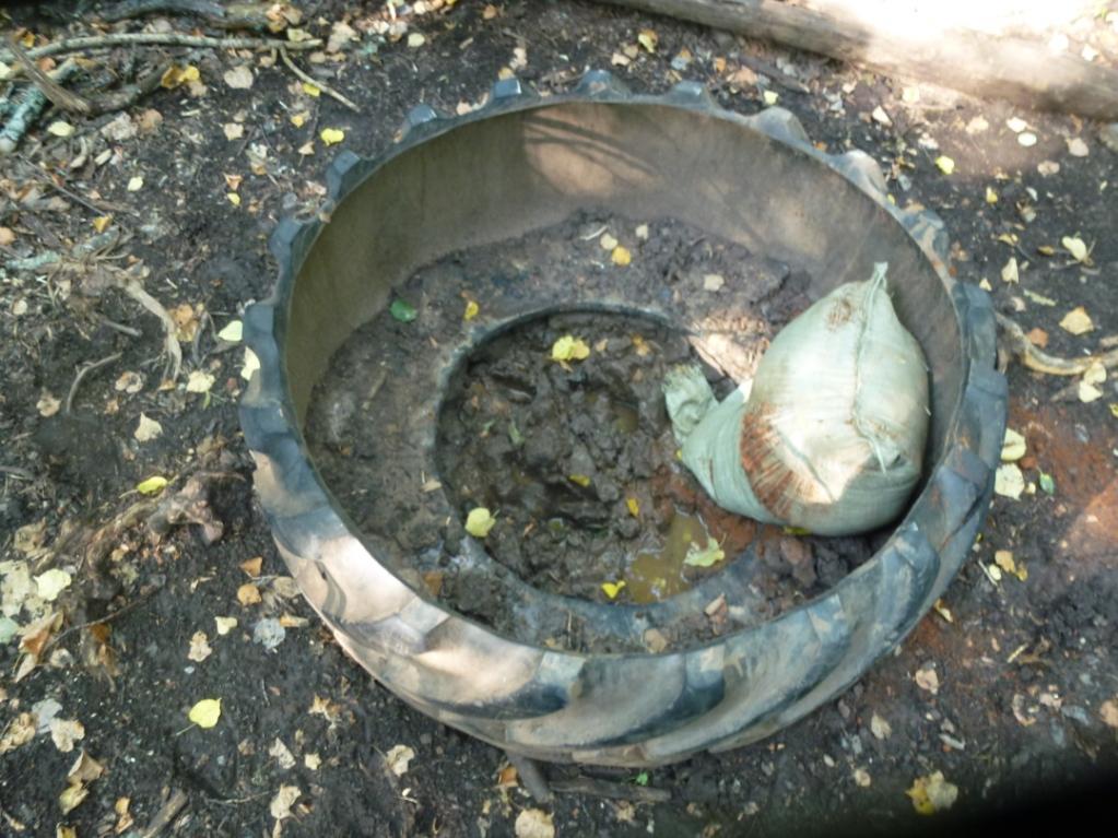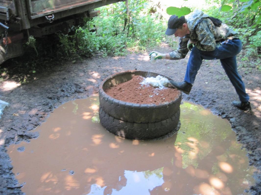 в грязи плавают утонувшие мыши, которых выгребаем и загружаем глину чередуя со слоями соли, соли примерно 1 мешок - 30-40 кг по весу.