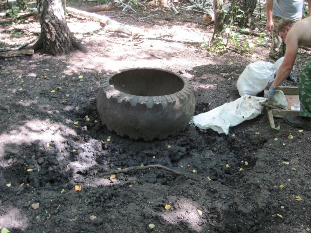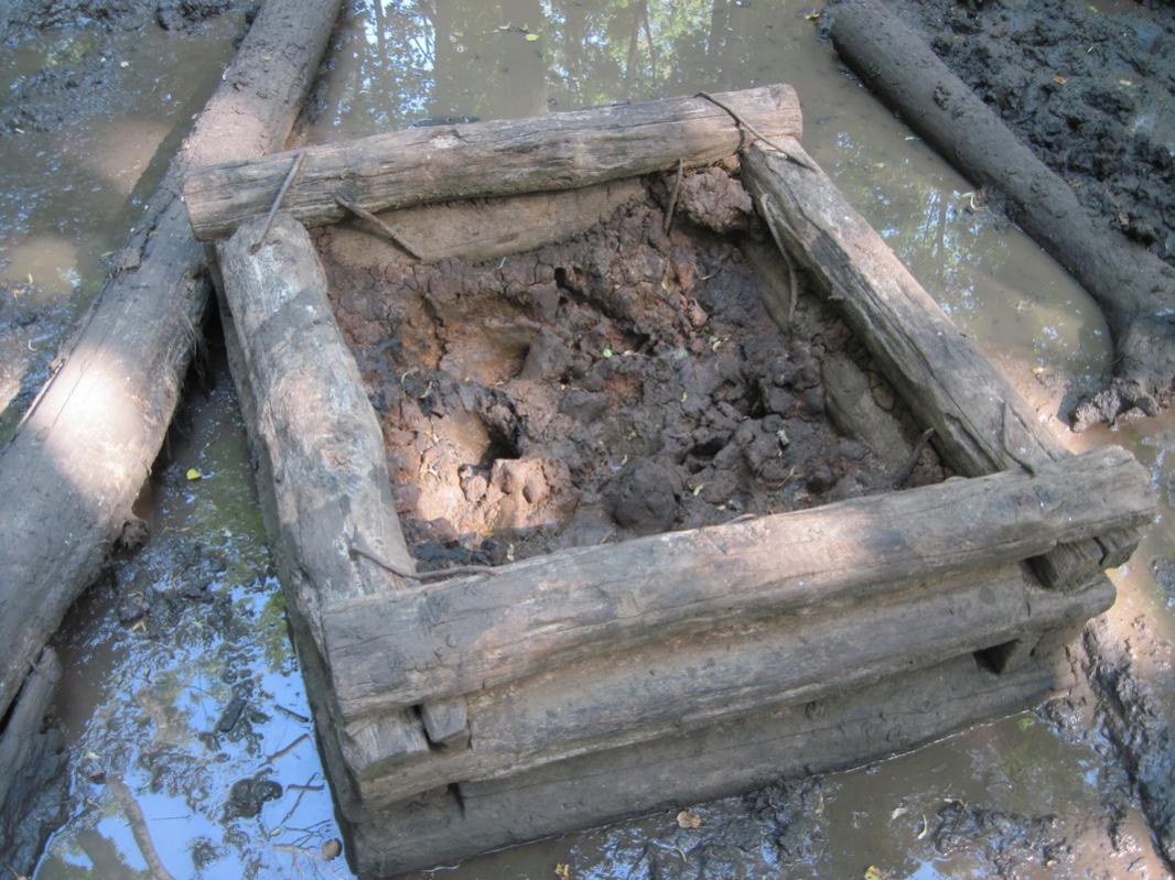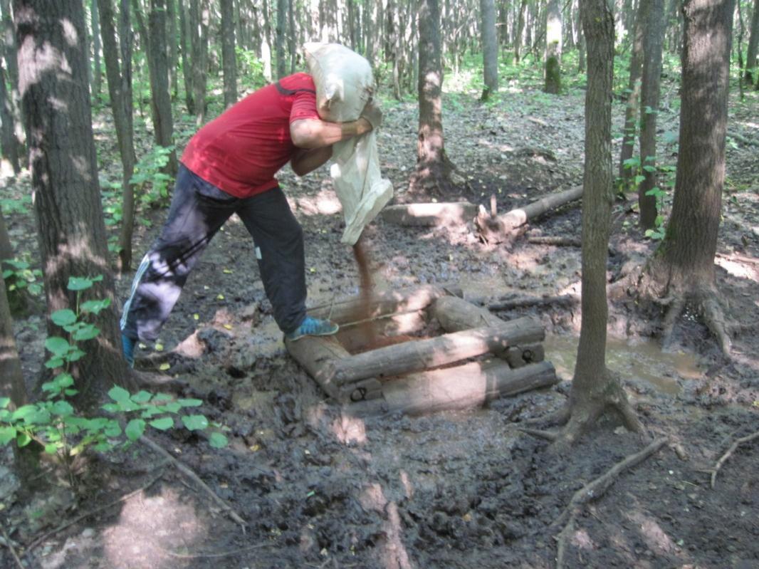 пока делали настил из брёвен, чтобы подобраться к солонцу, забыл сфотографировать процесс заполнения,
