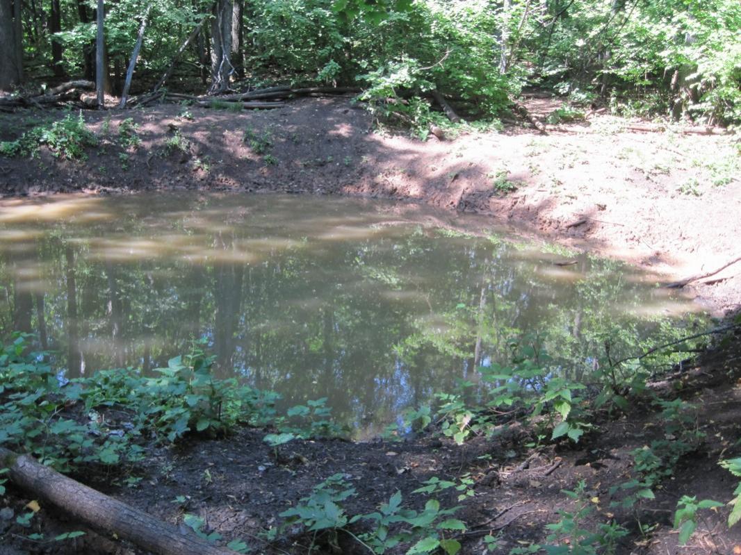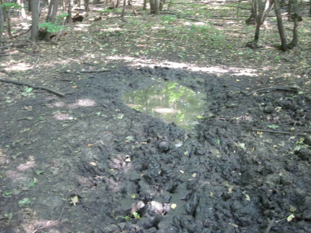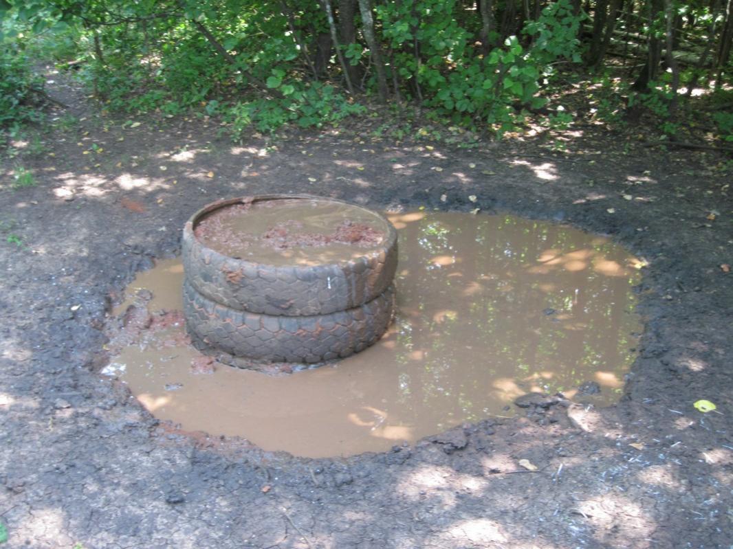 пока народ таскал глину и соль носилками до следующего солонца, заехал на один из водопоев-купалок (тоже выкопан бульдозером на месте понижения - вода талая и дождевая, за лето не пересыхает) и закинул в него несколько кусков соли кг 15-20