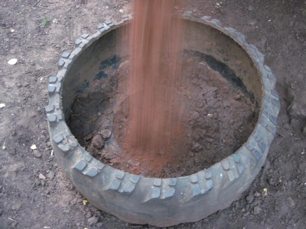 заливаем сверху водой, ещё раз перемешиваем (как раствор бетона)