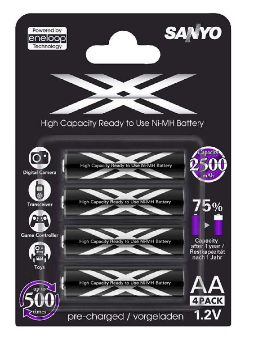 - Аккумуляторы AA Sanyo Eneloop XX, 2500mAh. 4 штуки в блистере. - 800