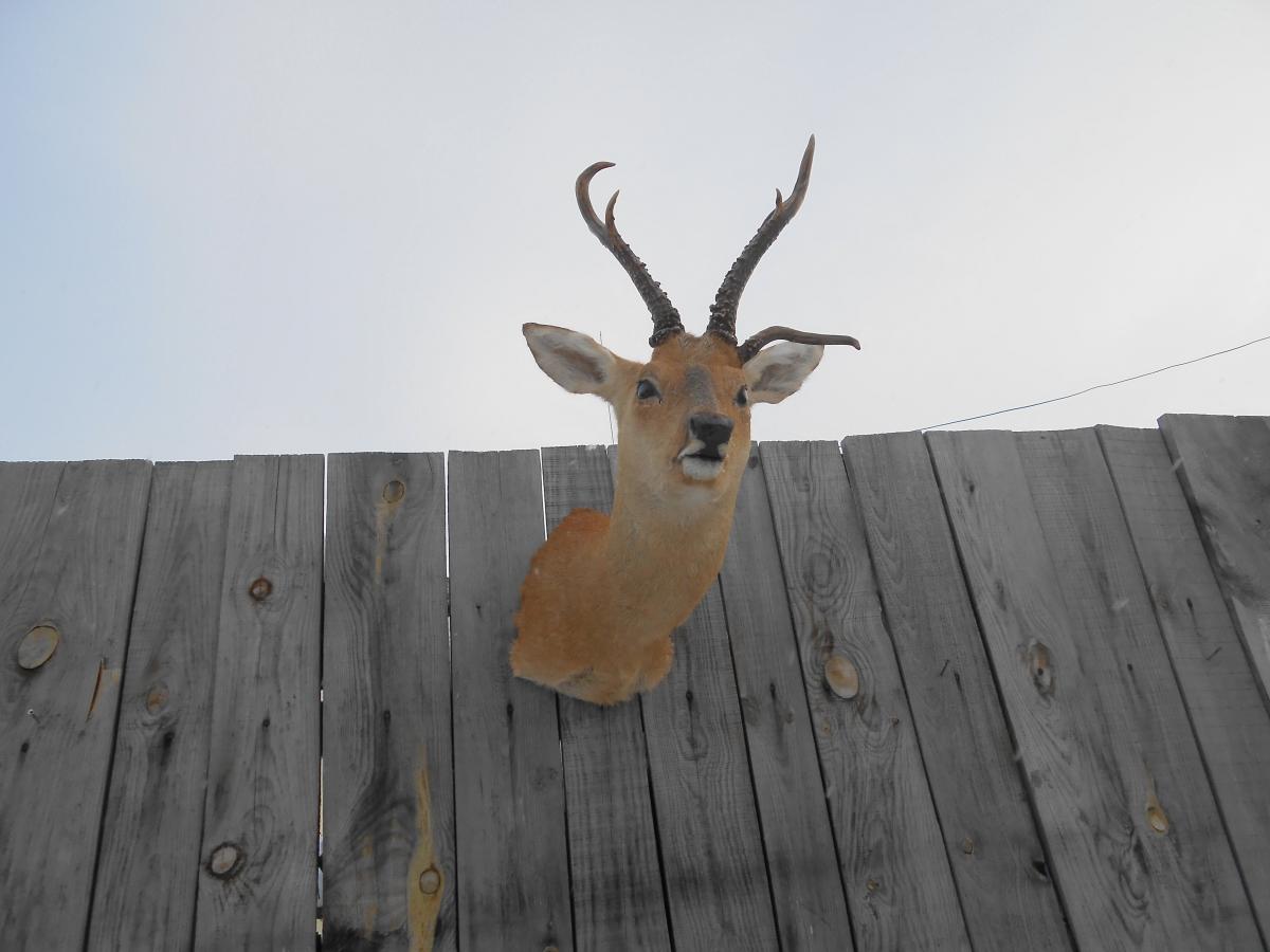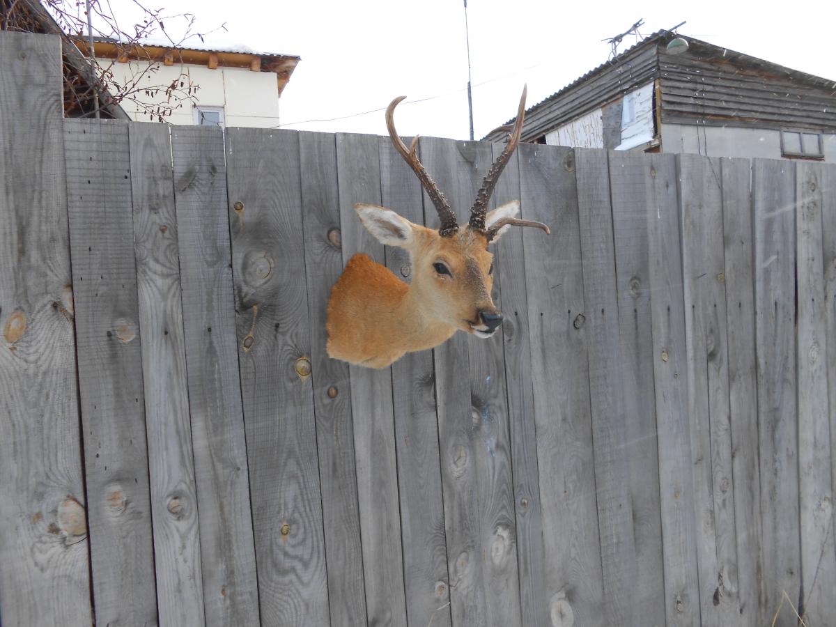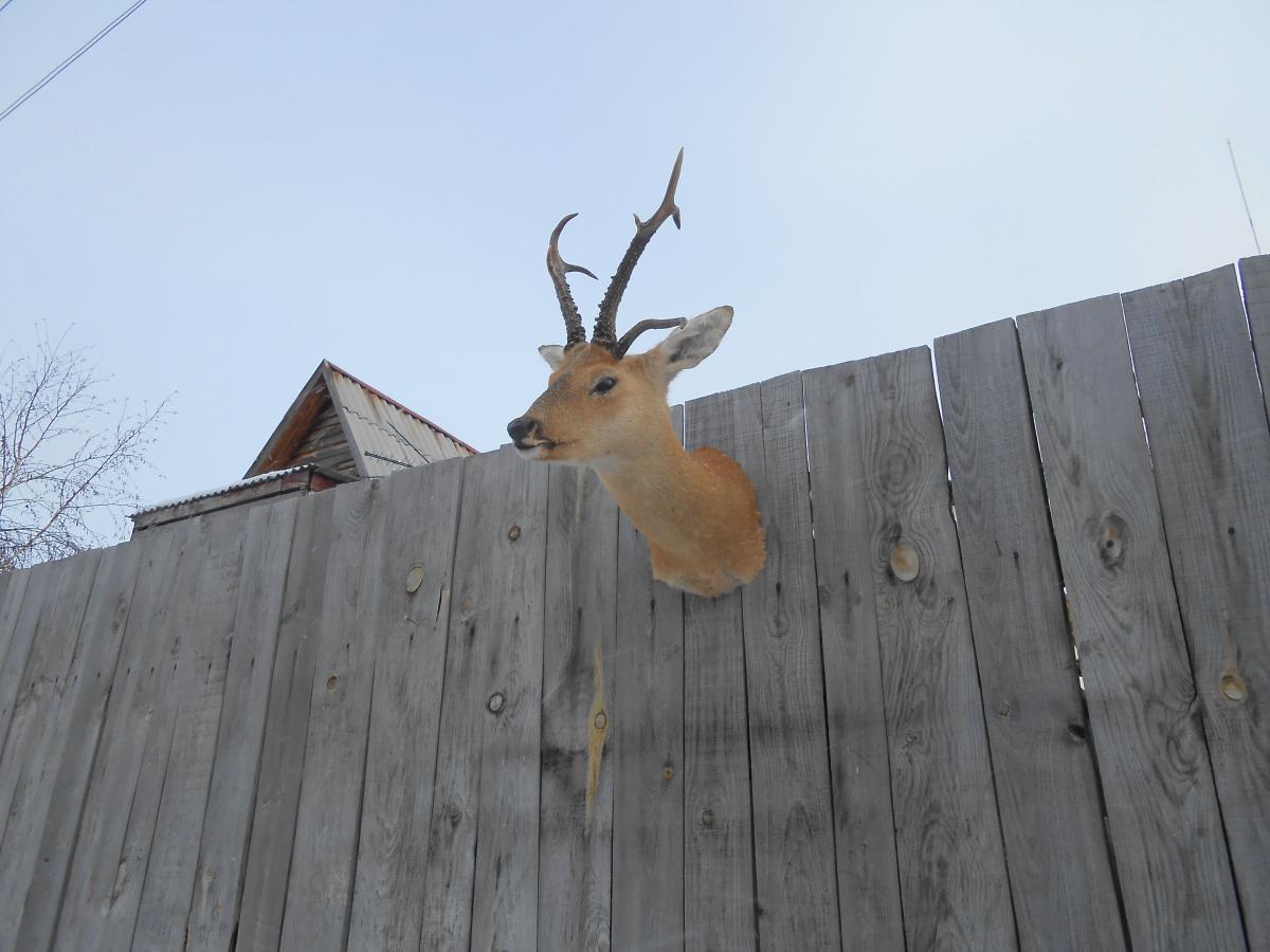 Обратите внимание, рог у косули коротко обрезанной аномальный, растёт на лбу.
