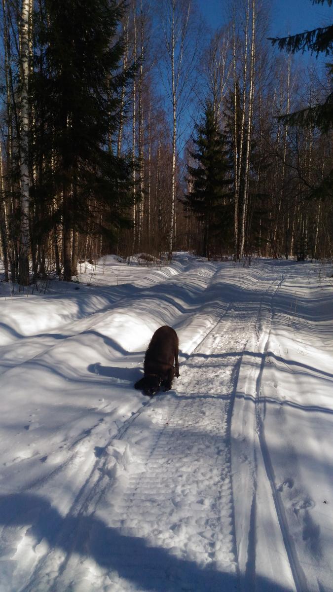 Да, взяли старушку кости размять, благо не далеко и наст.это Берта снежные ванны принимает