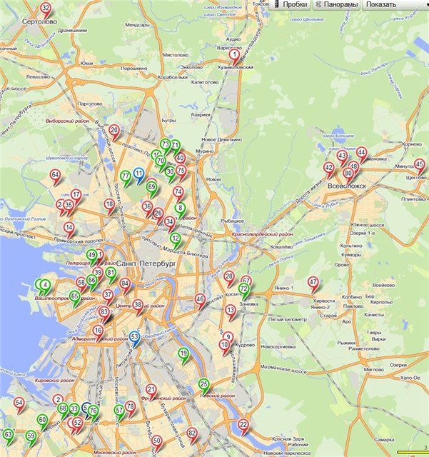 Места отравлений и отстрелов на карте С.-Петербурга Случаи фиксируются с октября 2010 года.