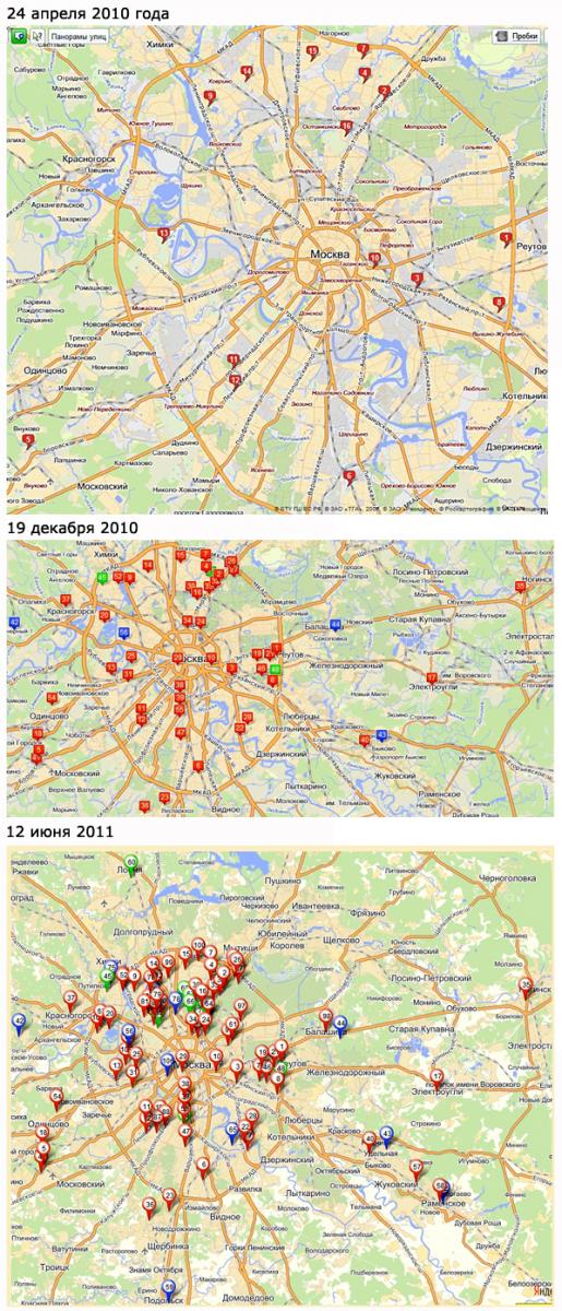 Мы (несколько человек из инициативной группы, которая образовалась весной 2010-го после безрезультатного коллективного обращения форумчан в ГУВД Москвы о фактах отравлений) ведем Карты более полутора лет.