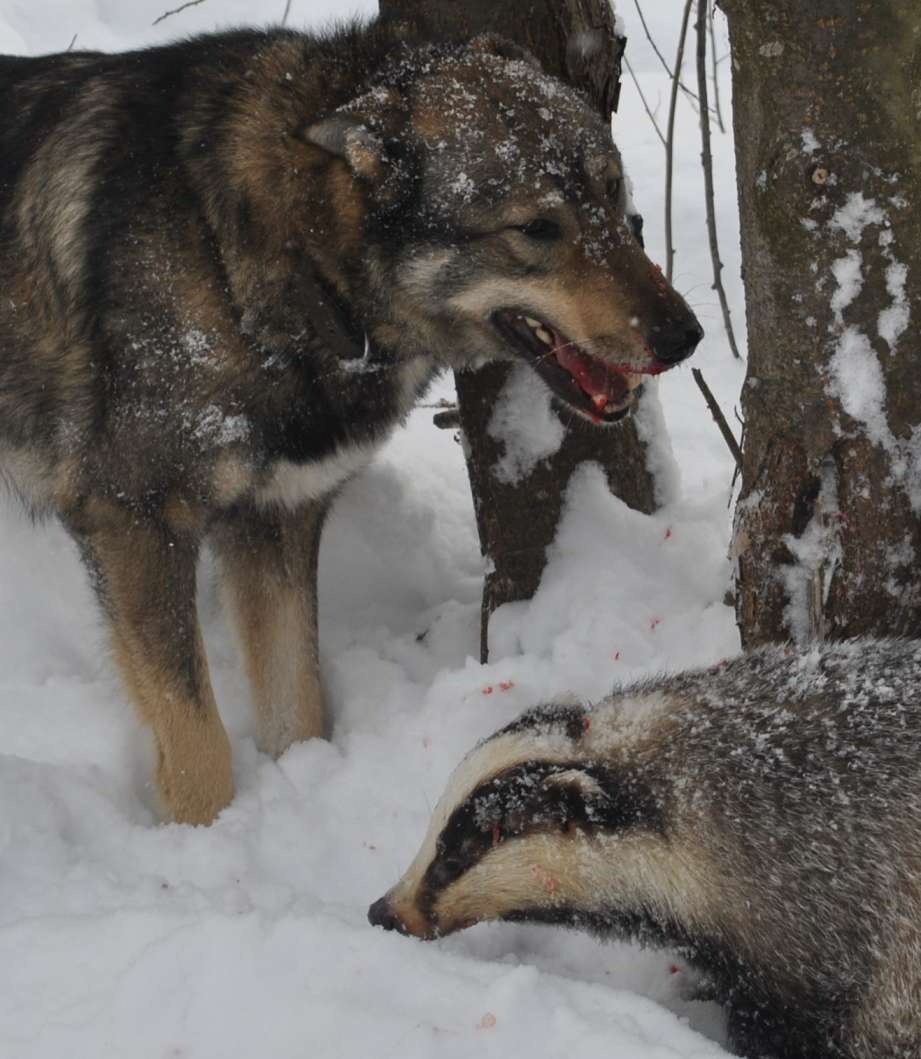Следующей в бой вступила рыжая красотка, барсук залёг в завале и вытуривали его оттуда с помощью петли. Сильный зверь! Еле еле выволокли!