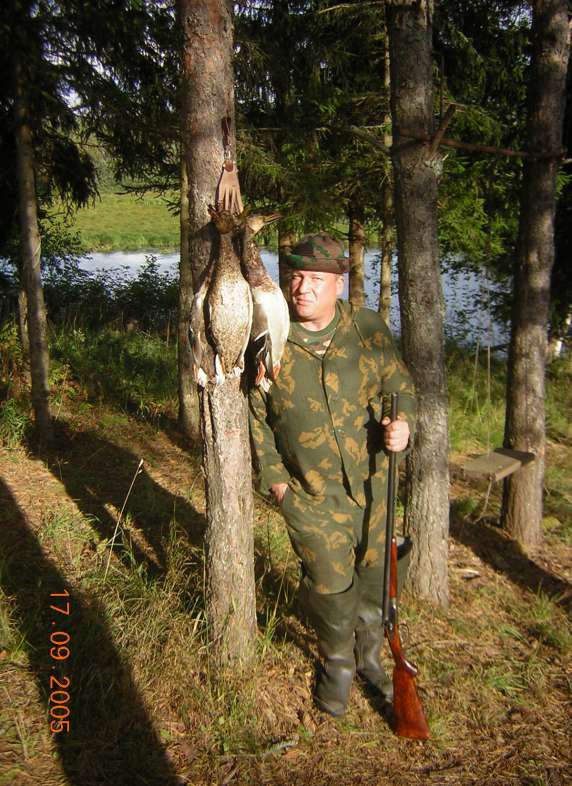 Выбирались из города тяжело. Пятница вечер. На Московском шоссе пробка, до Ям – Ижоры ехали около двух часов. Наконец съехали с московской трассы и устремились в направлении Чащи. В Нестерково приехали около часа ночи. Володя предложил переночевать в машине, но у бабы Нины горел свет и я предложил пойти договориться о ночлеге. В результате мы ночуем в бане. Не самый лучший способ переночевать, но, однако, лучше чем в машине или на улице. Затемно встаем, переносим весь скарб в лодку, и в путь на базу. База уже не первый год бесхозная. Приехали, быстро разгрузились, взяли оружие, патроны и отправились в утиный накопитель. Первую в это утро утку – пропуделял, меняться не стали и метров через пятьдесят добываю хорошего селезня, он падает чисто битый в кочкарник, и Карату не доставляет труда его достать. Дальше через протоку в основное русло, на следующей луже я на пропешке, Володя сбивает крякуху, она садиться в высокую траву, вылезаю из лодки, иду помогать нашему ветерану. Карату около десяти лет, левый глаз выбит тростником несколько лет назад, но он так и не ослеп, как обещали доктора, да и с чутьём все в порядке. Сбитую утку так и не находим, хотя пару раз мы ее перевидели, и могли добыть, но Вова хотел, чтобы ее подал Карат. В результате я провалился и промок по пояс. На улице было тепло и мы не поехали переодеваться, а продолжили охоту, в результате были добыты еще три селезня. К обеду вернулись на базу, сгребли все со стола, убрались в домике и протопили печь. В домике сразу стало уютно.