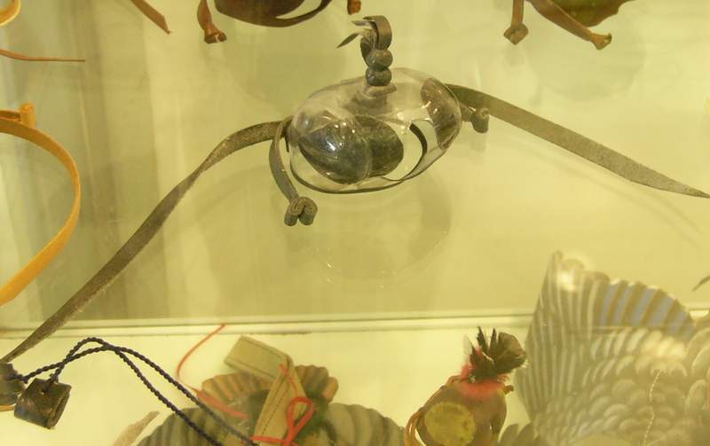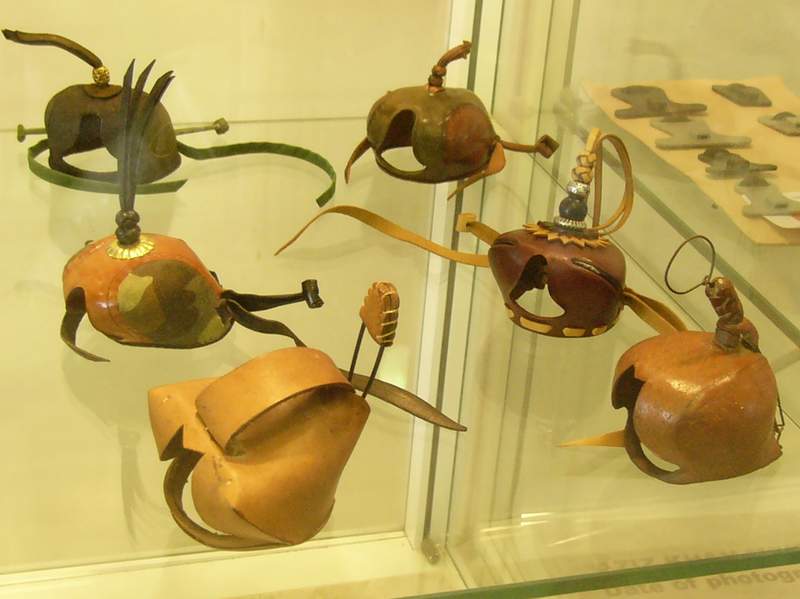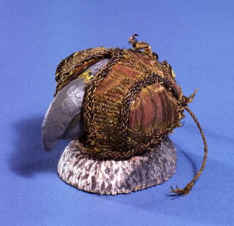 Ну а зачем были сделаны указанные выше "акульи" и "заячьи" клобуки? Отпугивают акул или приманивают зайцев? Сувенир, образчик мастерства, имеющий мало функционального, но сделанный красиво и с большой тщательностью. Кстати, в кожаных клобуках такой тип затяжек не встречается - а может быть, такие до нас просто не дошли. Очень просто представить такие стяжки на клобуке времен Фридриха Второго.