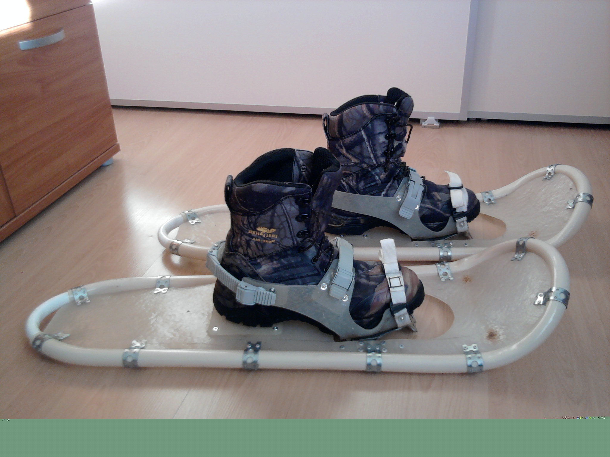 Самодельные снегоступы Made in Estonia из пластиковых ящиков и второй вариант из пластиковых труб