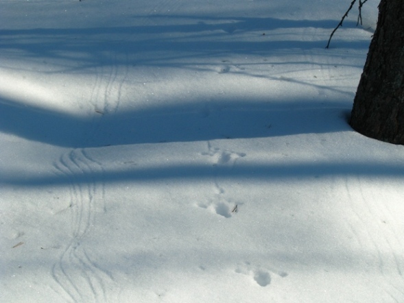 Никогда до этого года не удавалось мне весной выбраться в угодья на поиски глухариных токов.Находил только после открытия весенней охоты в заранее примеченных местах но вот погода выдалась очень удачная,солнце,тепло утром морозец ,самое время .Сказано сделано утром в электричку и в 8 утра я в лесу.До места начала поисков почти 10 км(ближе места тоже есть но хотелось подальше да и разминка не повредит)благо на снегоходах народ покатался а то и не дошёл бы наверное.Так как ездил одним днём времени было в обрез до первого сосняка дошёл к 10 часам встал на лыжи и вперёд.Снег под лыжами так хрустел что я сам себя не слышал ,лыжи недавно просмоленные ободрал до костей вообще если поиском токовищ заниматься лучше на пластике брать.Обход первого места ничего не дал даже следа не видел хотя место не плохое сосна только низковата на всех токах где я был всётаки повыше.Расскажу поподробнее о местах поиска первое это отдельно стоящий сфагновый сосняк с высотой деревьев 7-8 метров с небольшой примесью берёзы метров 100 на 200 второй тоже только в поперечнике 1км и больше берёзы к нему я и отправился.Пройдя 1,5км оказался на второй точке место оказалось интереснее и точ в точ напоминало мне ток на котором я был в прошлом году.Решил так как сосняк большой а времени мало пересеч его по диагонали а в зависимости от результатов действовать дальше.Пройдя 50 метров увидел чертёж потом второй уже другой птицы они шли параллельно друг другу в одном направлении на расстоянии метров 6-8 друг от друга то подскакивая то поворачиваясь в разные стороны.Позже нашёл ещё следы но более старые и без чертежей. Обойдя приличный кусок сосняка больше следов не видел но потом недалеко от чертежей нашёл сосну с разбросанным вокруг помётом похожим на токовый но не совсем, на кормовой помёт он не похож да и не такой обильный.Вот такие результаты поездки конечно надо в апреле проверить надо тогда всё станет ясно сейчас делать выводы рано ведь ездил я вчера а регулярно на тока он будет вылетать в середине апреля ну и по погоде конечно.Очень надеюсь на то что это ток многие признаки и повадки этой птицы указывают на это. В следующие выходные пойду по другим местам может чего увижу.Всем удачи в охоте за глухариными токами эта охота тяжела но не менее интересна и эмоциональна.p.s yf на фото сосна под которой увидел помёт правда его не видно солнце его вдавило в снег.