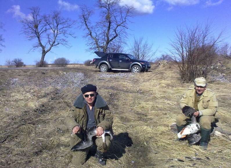Ну я лучше тут коротко отпишусь. Короче давно нашли поле с гусиками километров в 30 от Калининграда и трижды его навещали в марте, наблюдали сидят ли. 23 марта с трудом пробили туда путёвки и выдвинулись изготовить скрадки. Чиновники от охоты утверждали, что там будет много охотников. Прибыли, а гусика то и нет! В связи с тем, что такое уже не раз повторялось сильно расстраиваться не стали. Как говорится надежда умирает последней, хотя бывало, что такие выезды заканчивались простым созерцанием природы... В этот раз повезло побольше. С рассветом на далёких заливах началась канонада, весьма смахивающая на продолжительный бой. Мы знали, что гусей это спугнёт, и они двинуться на поля, где их и поджидали. Первый прилетел с рассветом, и после выстрела грохнулся на притаившегося товарища прямо в его скрадок. Потом налетали и одиночки , и группами по 4-8 штук, и большими стаями. Некоторые шли транзитом, не реагируя на Спортпластовские чучела, некоторые снижались на близкий выстрел. Били недалеко с расстояния 20-40 метров двойкой, единичкой, а иногда и двумя нулями. Конечно же мазали, но не пореживали, т.к. налётов было много. Кореша побежали за одним подранком, а тут из обстрелянной стаи назад прилетел гусь, и как мессер вошёл в штопор и грохнулся радом с ними, как будто хотел стрелков наказать прямым попаданием. Со стороны смотрелось великолепно! Наконец Мурка застреляла куда нужно( брал с собой дополнительно и ТОЗ-34). Предварительно перед охотой подобрал соосную насадку из 5-ти имеющихся, оказалась 0,25мм., и сдалал вставку между торцом приклада и затыльником, изменив питч. Сегодня она меня оочень порадовала и к ТОЗУ не прикасался, долбил только из неё. Вот такое состоялось открытие, думаю довольно успешное. Кроме того надышались свежим весенним воздухом, послушали жаворонков, видели косуль. Да, гуменника и серого почти нет, улетел севернее- позно открыли. Стаи идут и всем Питерцам хватит. Для отдельных "личностей" сообщаю, что всех ВЛАСОВЦЕВ пропустил дальше. По мере поступления фото, буду их выкладывать в начале темы. Всем предстоящего праздника охоты!