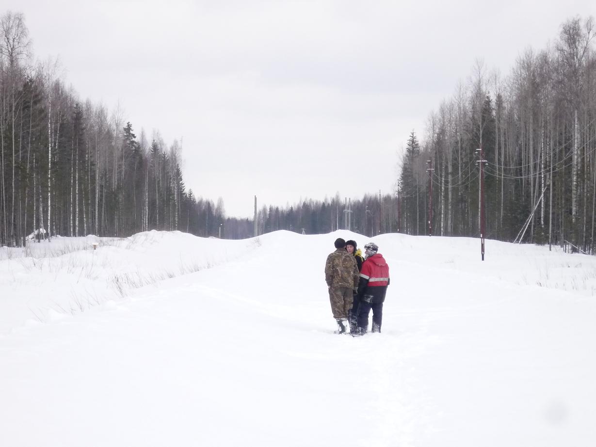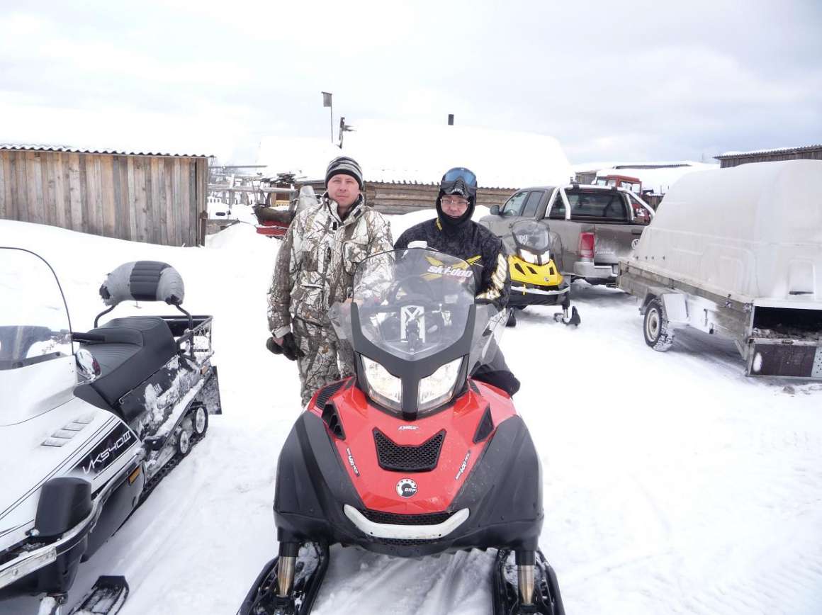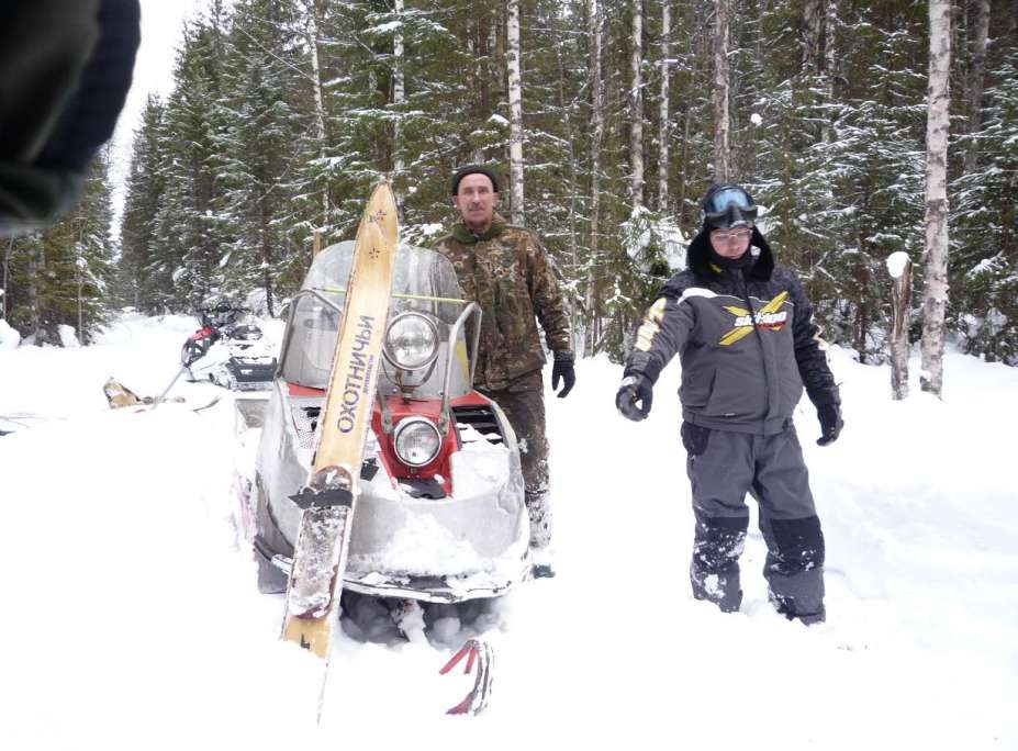 Вечер первый. Смеркалось. Легкий морозец. Небольшой ветерок, на ам- км 15 до деревни, где снегоходы – загружаемся, одеваемся в костюмы белых медведей- кабаны их не боятся. Снега по самые…не «балуй». Снегоходы застревают, но лопата, друг человека, в последние зимы, выручает не только в СПб.
