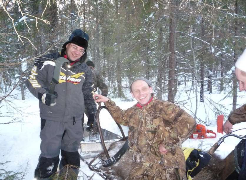 Последняя переписка, и как-то в феврале, собрался, закинул вещи, ружье в ам, дал ЦУ на работе, родным… и махнул в пятницу, с утра, на выходные, на южную окраину Архангельской области, в медвежий край, в полном смысле слова. К слову-самого большого медведя ребята добыли на 250 кг.