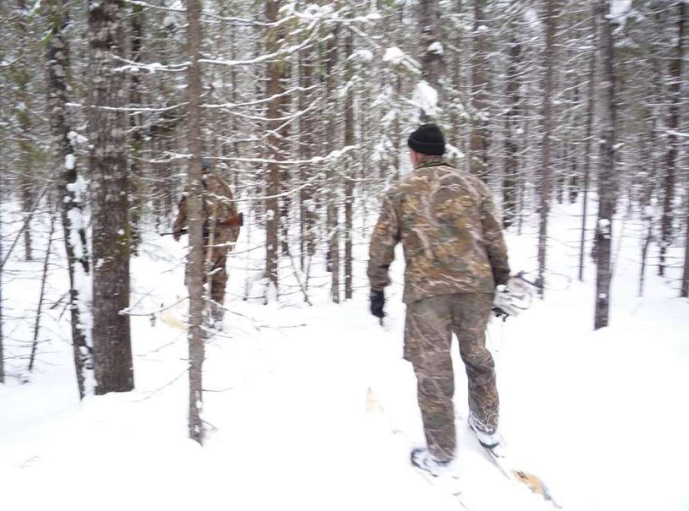 Метрах в 500, до предполагаемой кормежки кабанов, встаем на лыжи и осторожно шуршим ими, обгоняя друг друга на поворотах.