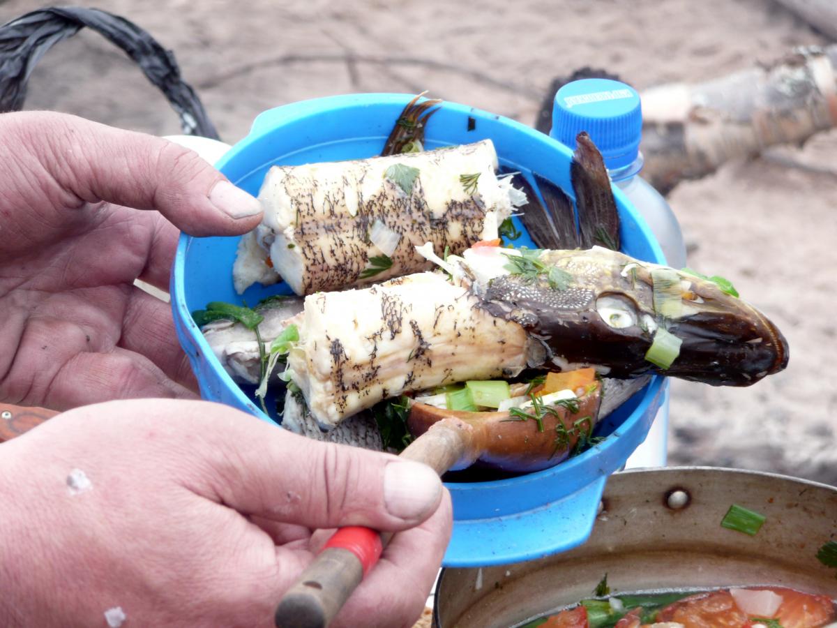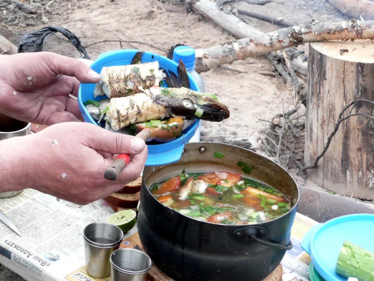 Мы ещё проще готовим уху. Вода закипела,солим,специи,лук и ложим рыбу. По готовности рыбу вытаскиваем. Рыбу едим,а бульоном запиваем. Лишний вес на заходних рыбалках не нужен,поэтому картошку не берём. Ходить приходится на большие расстояния.