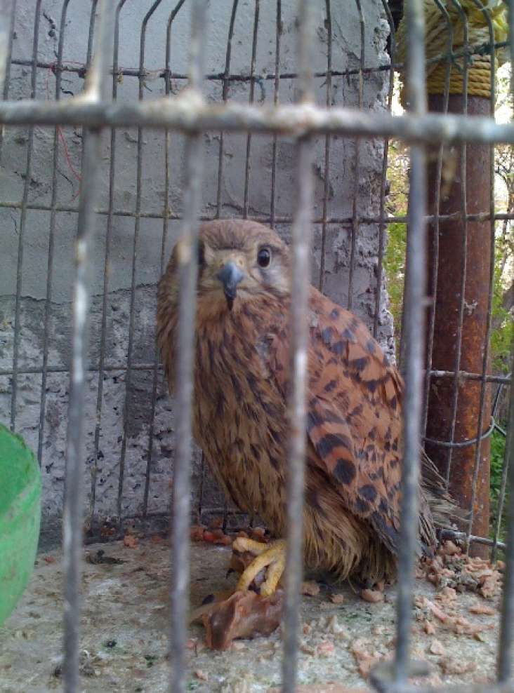 Это обыкновенная пустельга. В очень грязном, замусоленном состоянии, с убитым пером и в абсолютно неподходящем месте для содержания. В сети про них есть много информации. Если требуется инфа по правильному содержанию и кормлению, я добавлю отдельно.