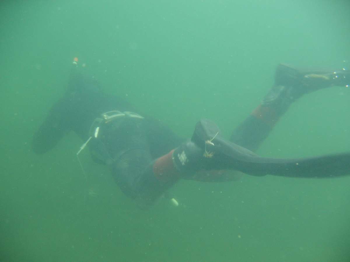 Там муть страшенная, видимость 25-30см. Бил на "просвет" лёжа на спине...