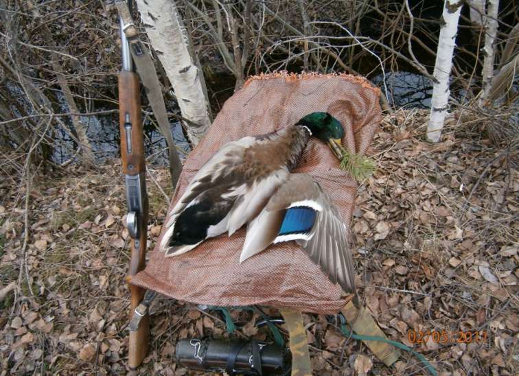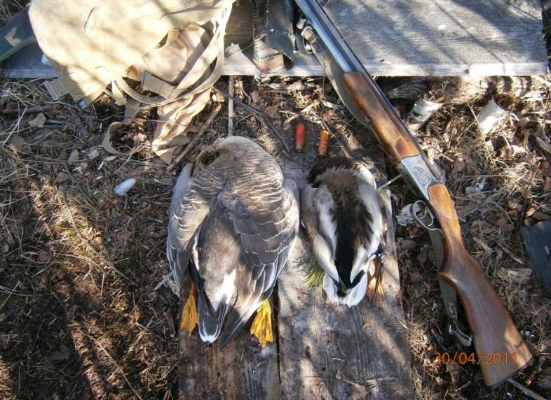 Гусь "порадовал" на открытие. Шёл неплохо, но два часа игнорировал мои чучела и профиля. Всё объяснялось просто, в метрах 150-200 сидела стая, и все проходящие гуси подсаживались к ним. Все мои корыстные планы, что густи будут идти через меня, провалились. Пришлось в 7 утра, пойти и согнать "соседей", потом до 9 утра, благополучно высадил патронташ, но всё мимо. В воскресенье 24, вообще просидел без выстрела, гусь всё шёл мимо, и ничего его не интересовало. В последующие дни пришлось поездить по полям и болотам, поисках гусинного братства. Периодически стоял на тяге, в хорошую погоду вальдшнеп тянул, и даже не плохо. Когда похолодало за вечер тянуло 2-3 вальдшнепа. Поохотил и селезня. В этом году без глухаря, ходил только на один ток. За ночь ни одного точения, ни одного слёта, ни одной глухарки.