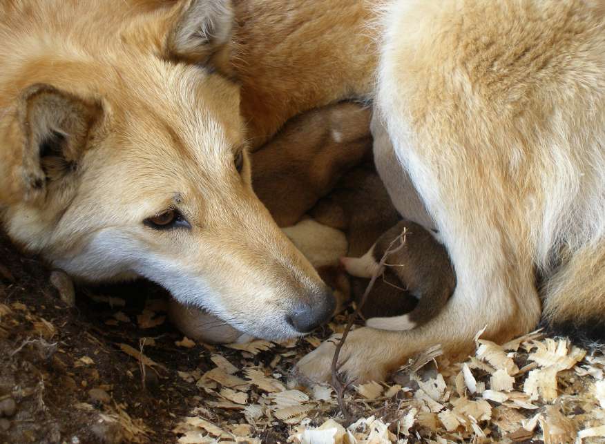 Два раза собирал щенков в ящик и помещал в "роддом",и два раза настырная маманя перетаскивала кутят в берлогу.