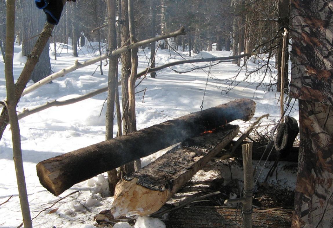 Продолжу о нодье. Не знаю, насколько этот вариант нодьи грамотен, но горит исправно, и мне кажется наиболее удобным.