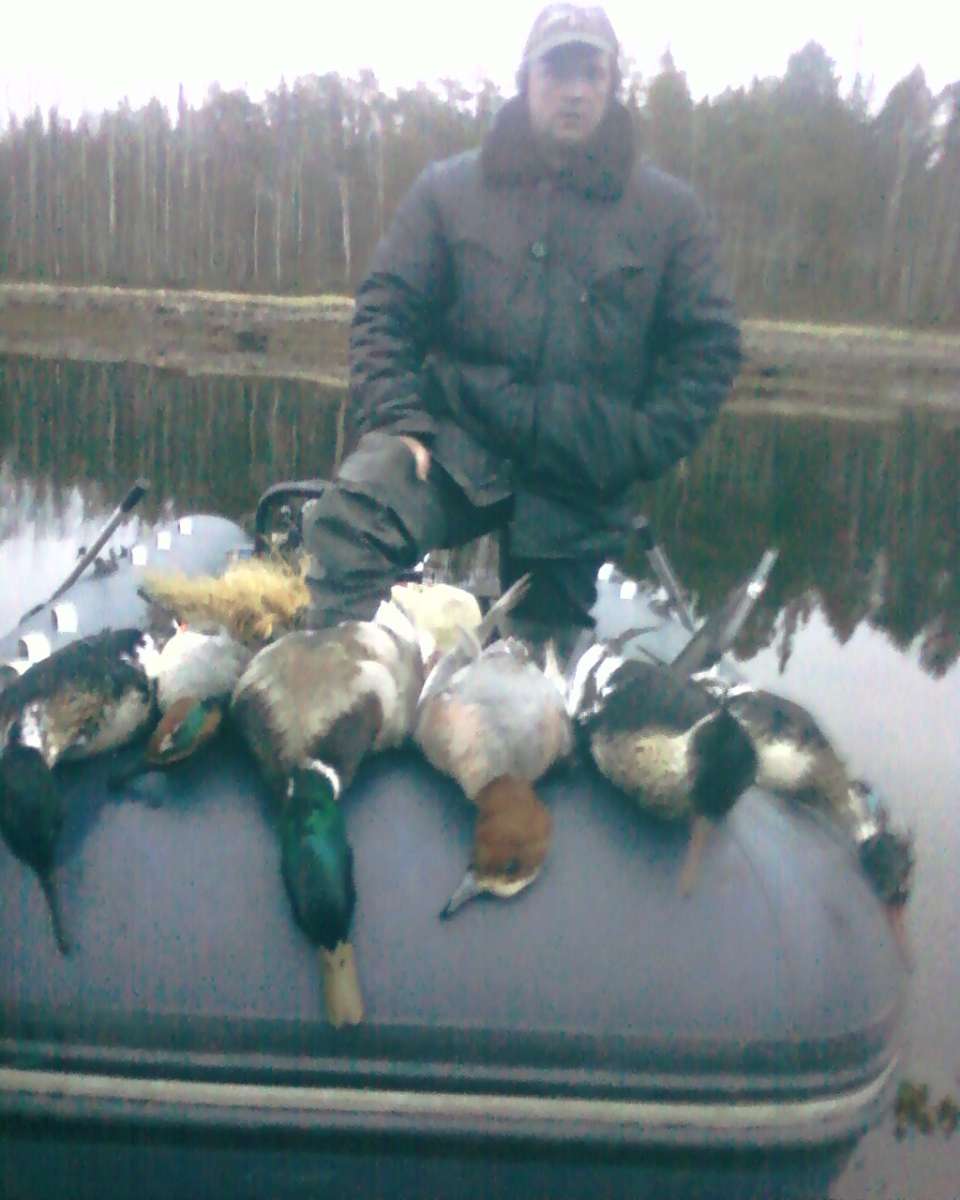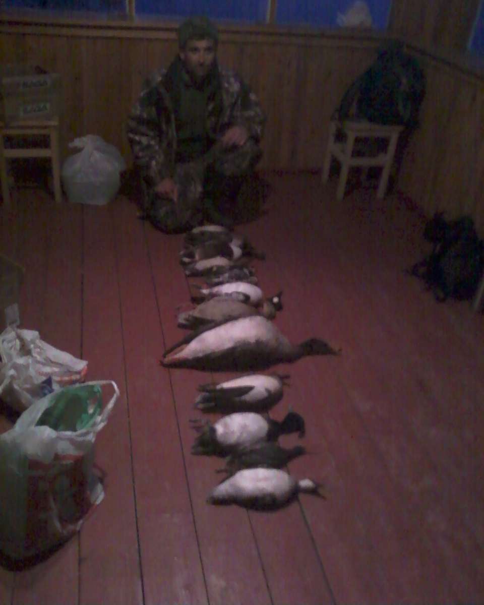 На следующий день с утра выехали на озеро, где были уже подготовлены шалаши. За утро и вечер добыли на четверых порядка 25-30 селезней.
