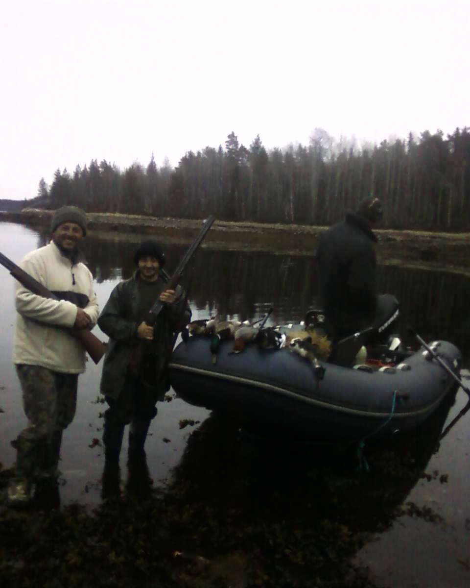А приехали на сутки раньше чем планировали, так как были на юге Карелии на базе и им там не понравилось, количество утки. За сутки добыли всего два селезня.