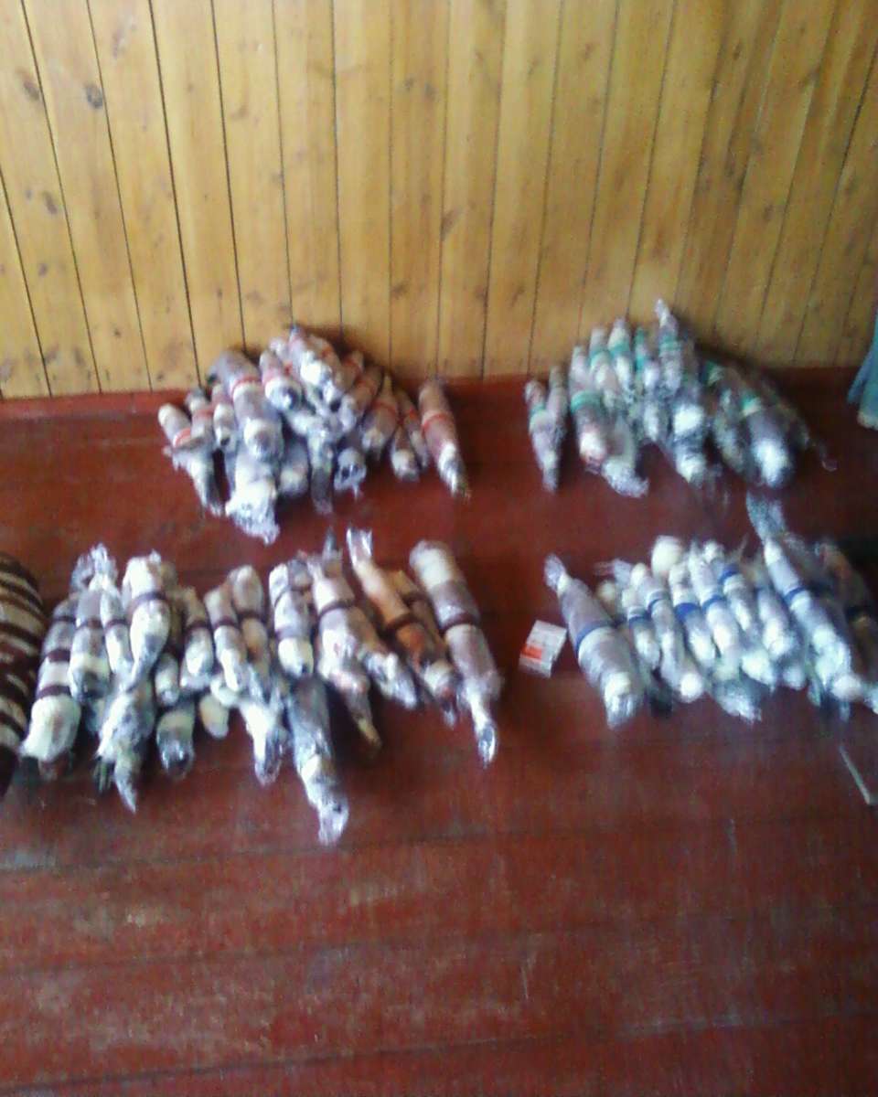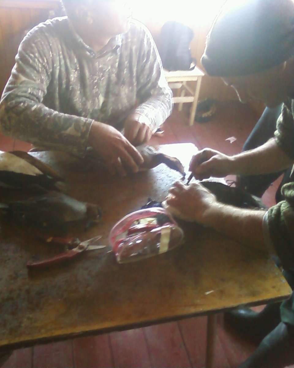 Свои трофеи они обрабатывали сразу после охоты. Специальными инструментами снимали аккуратно шкуру, обрабатывали каким то веществом и скручивали аккуратно в трубачку и помечали свои трофеи изо лентой у каждого свой цвет. На охоте тоже сразу на лапу привязывали свою изо ленту.