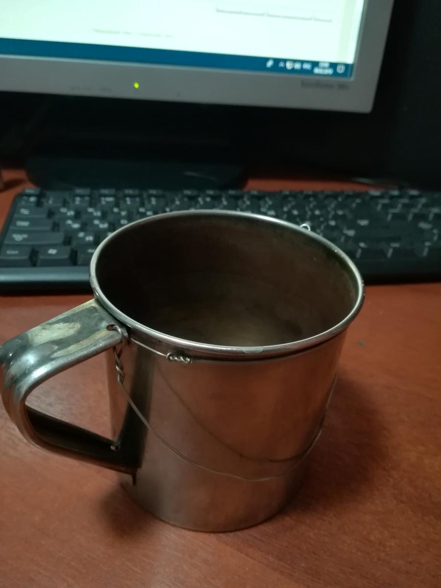 Такая кружка и у меня есть. От предков досталась. Только у меня фарфоровая, расписная, с мушкетёрами."Пивовар", 1896. Ручки там вряд ли складные, но вот крышечка похожа как в девайсе из фильма.